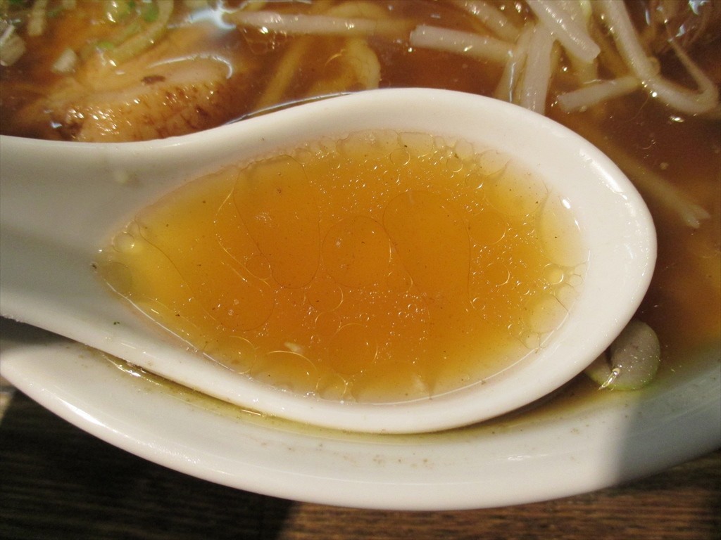 ラードの層に覆われたスープはまずは激熱あちちち。ふーふーしながらすすってみるとこってりまろやかな油の中から焦がしたような風味の醤油に力強いとんこつの出汁を感じます。老舗と言われる店と比べるとマイルドで受け入れられやすい仕上がりになってるような。