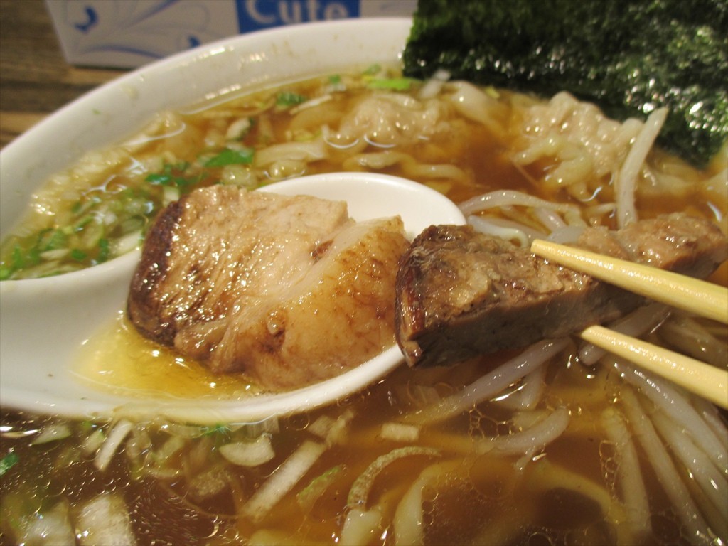 チャーシューは小ぶりカタマリの肩ロースをメインに赤身のみのも入ってきました。メインのは脂身多めでしたがしつこさは感じなく味付け濃いめで柔らか旨。もう一つのは脂身皆無で濃い味付けと肉っぽい旨味を味わえました。