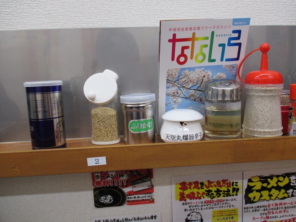 卓上には上下に分かれて調味料だったり漬物だったりふりかけもあって刻み玉ねぎが入れ放題だったり。「揺れない想い」はにんにくで「情熱レッド」は豆板醤、「負けない強さ」は生姜だったりと意気込みとユーモアは感じますがワケワカンネな人もいそうな懸念。