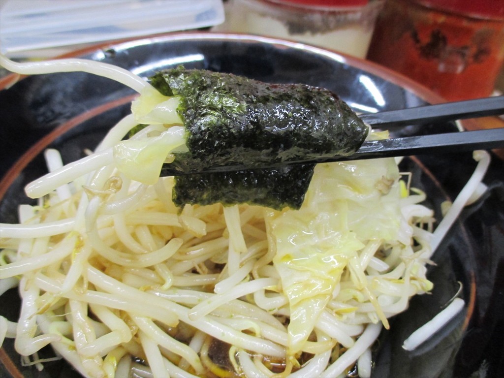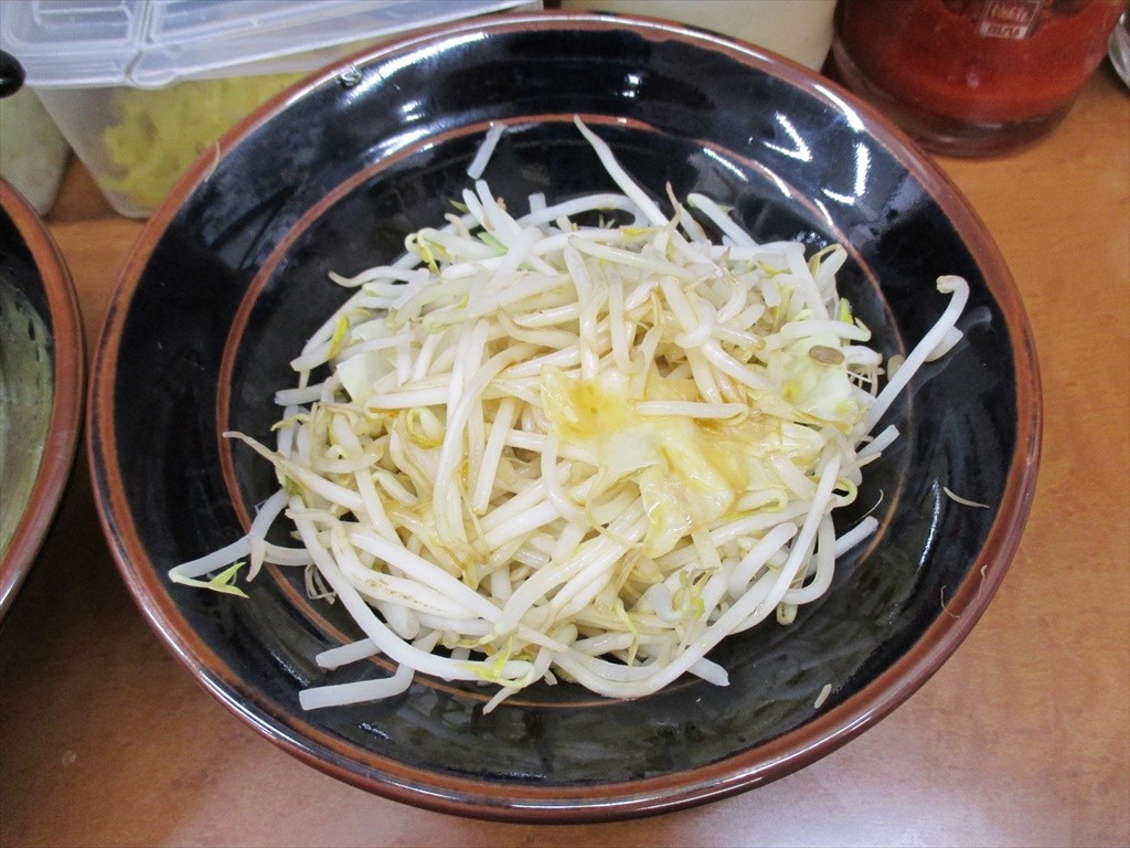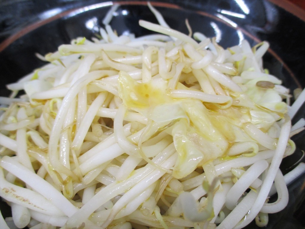 ラーメンと同じドンブリで出されるもやきゃべ。別皿って券売機にあったけどドンブリは皿とは言わないんだぜ☆ミ