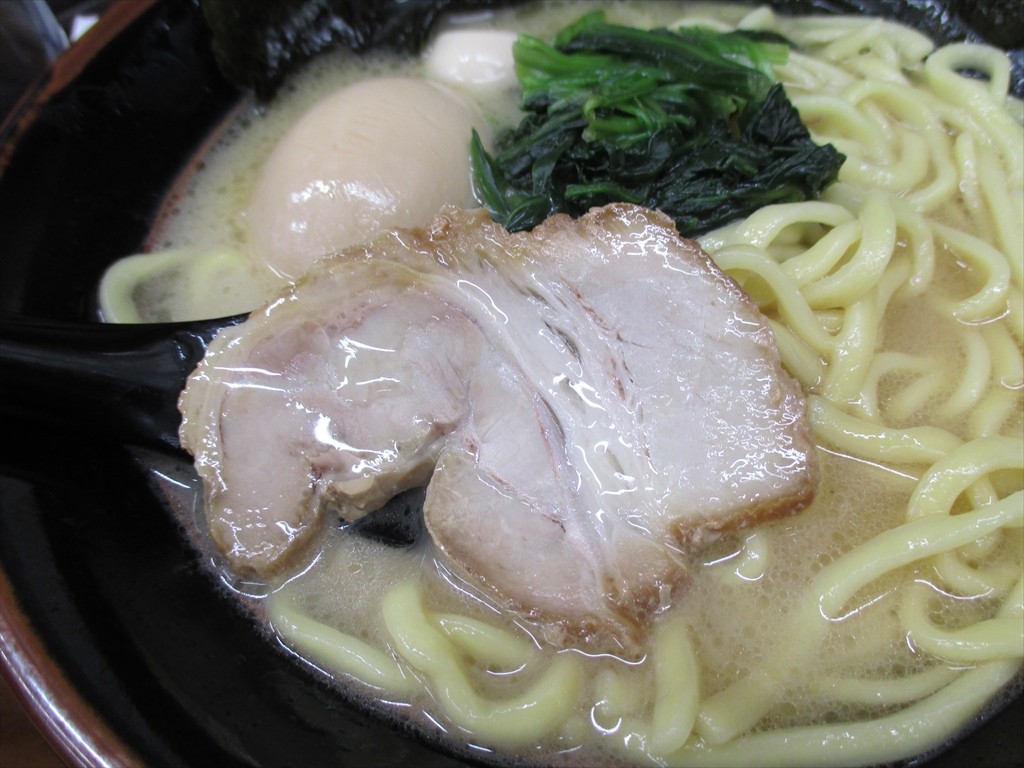 油少なめにしたせいなのか細かな油玉が浮いたスープ。謳っているからには豚骨なんでしょうが髄の部分までき炊き出された濃厚な動物系にカドを感じないながらも醤油塩分はきっちりと。