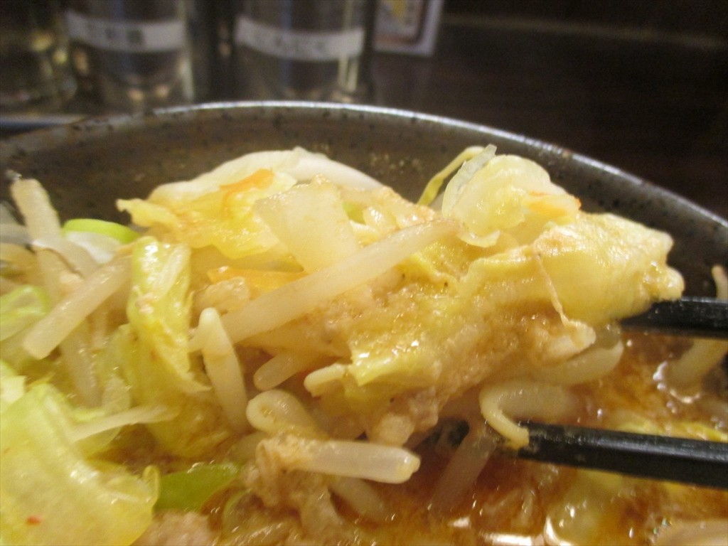 お野菜にはもやしにキャベツが半々くらい。キャベツの甘さも良かったんですがもやしのひげ根が無かったのには感心しました。