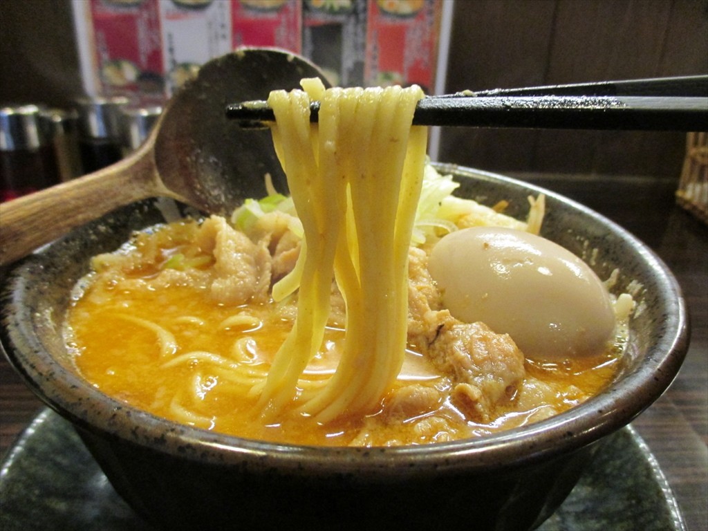 とろり濃厚ちょいとしょっぱいくらいながっつり味噌。魚介がいるのは分かるものの味噌に隠れてしまっていますが多めな背脂も相俟ってとても力強い味わいになってます。