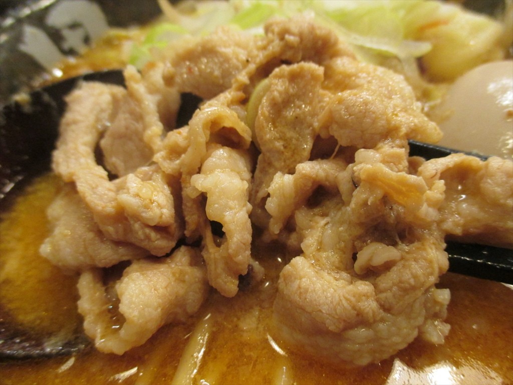 チャーシューは無く入ってくるのは豚の柔らか煮。これが生姜がばっちり利いてて量もたっぷり。後半にはスープの味も1段上げる働きもしてくれます。いやホントなんでこれを使った丼ものが無いのか不思議なくらい。