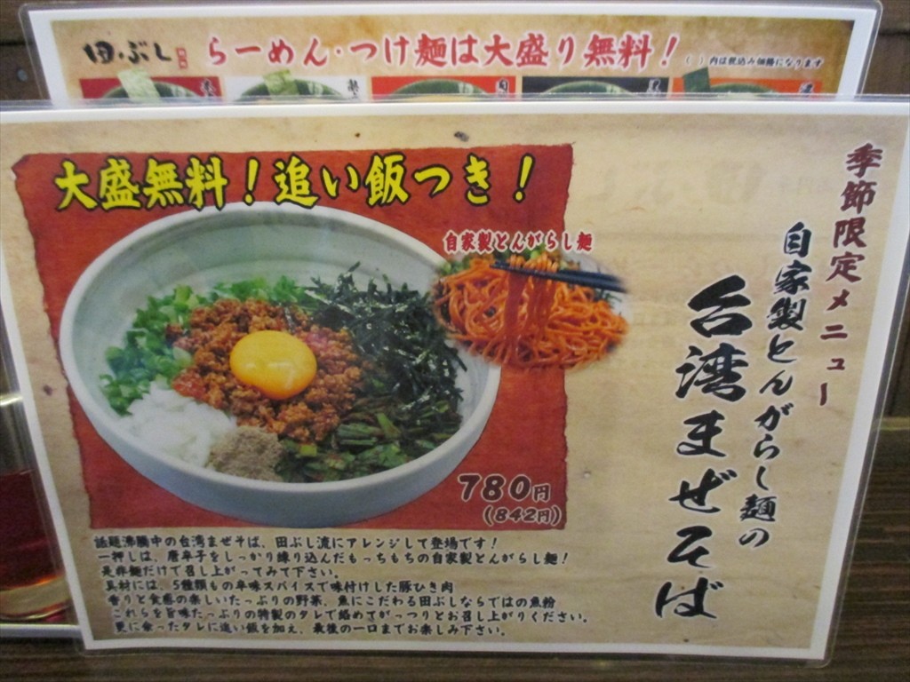 季節限定として流行の台湾まぜそばも。昨秋からの提供のようですが限定からレギュラー化の流れもあるのかな。