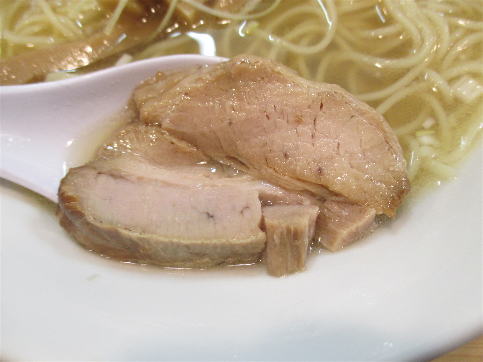 チャーシューは1センチ近くありそうな厚切りのバラスライス。脂身が少なくほぼ赤身でほろっほろに柔らかい逸品です。