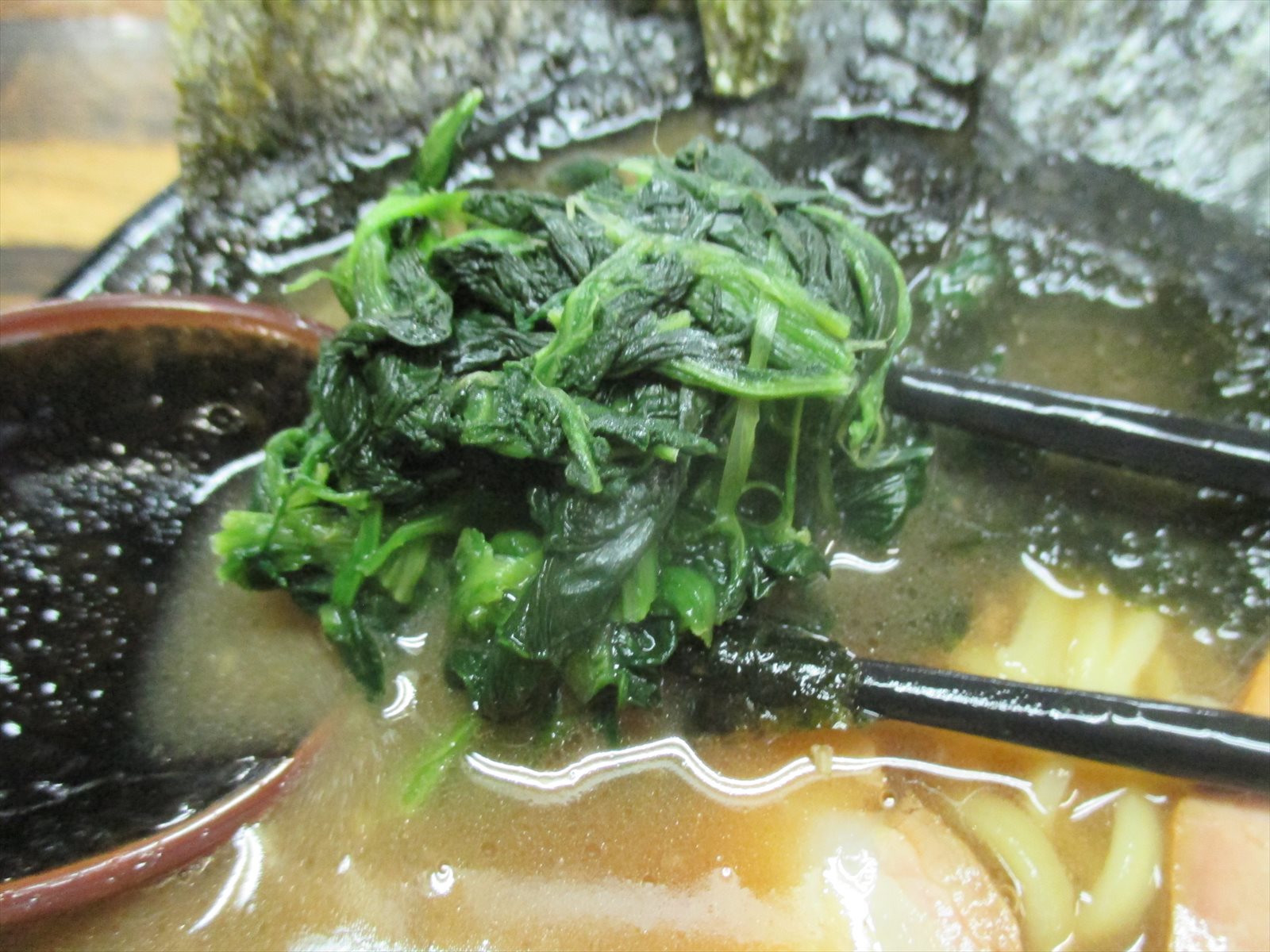 ほうれん草は家系標準くったり仕様。量はわりかし多めかな。
