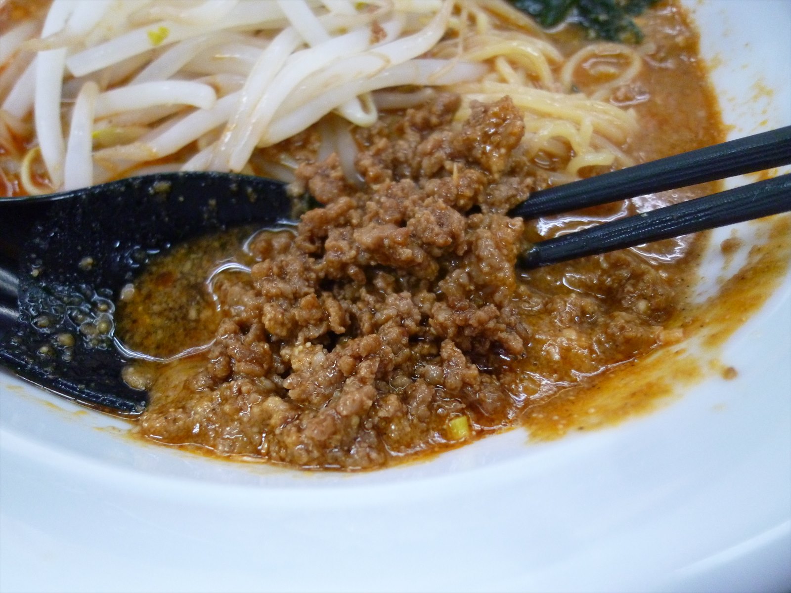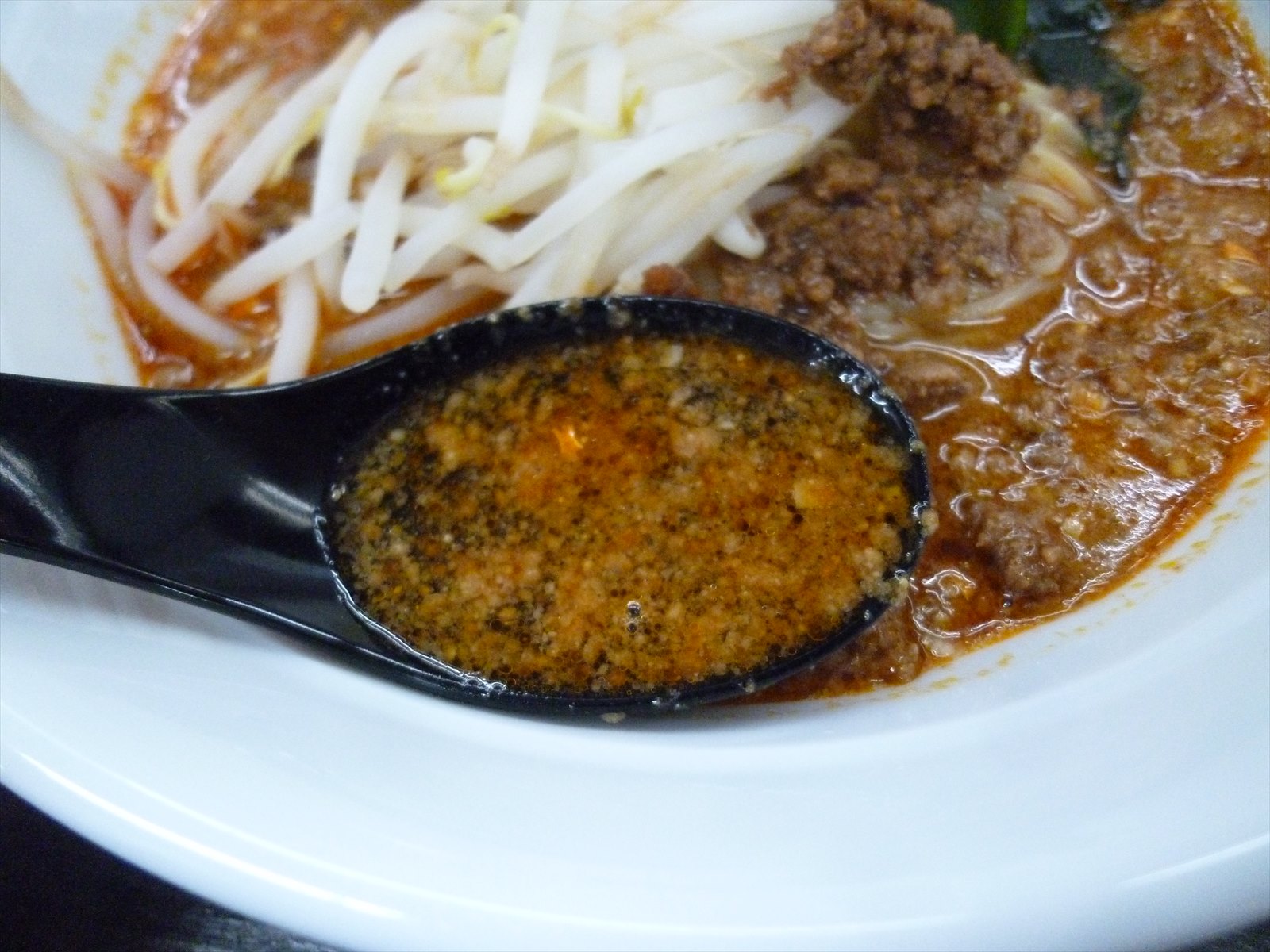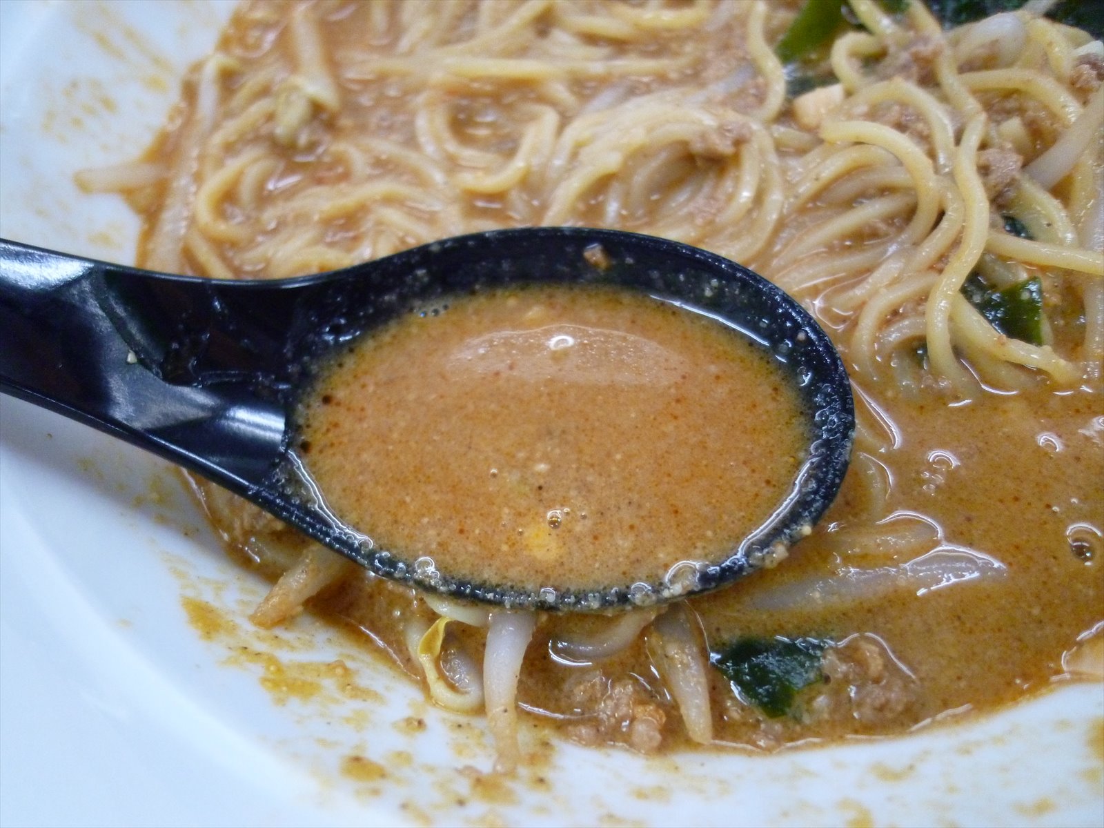 でも味わいの方は底に潜んだゴマが前面に出てきて一気にとろとろ濃厚ピリ辛担々な味わいにシフトチェンジ。これうんま〜。