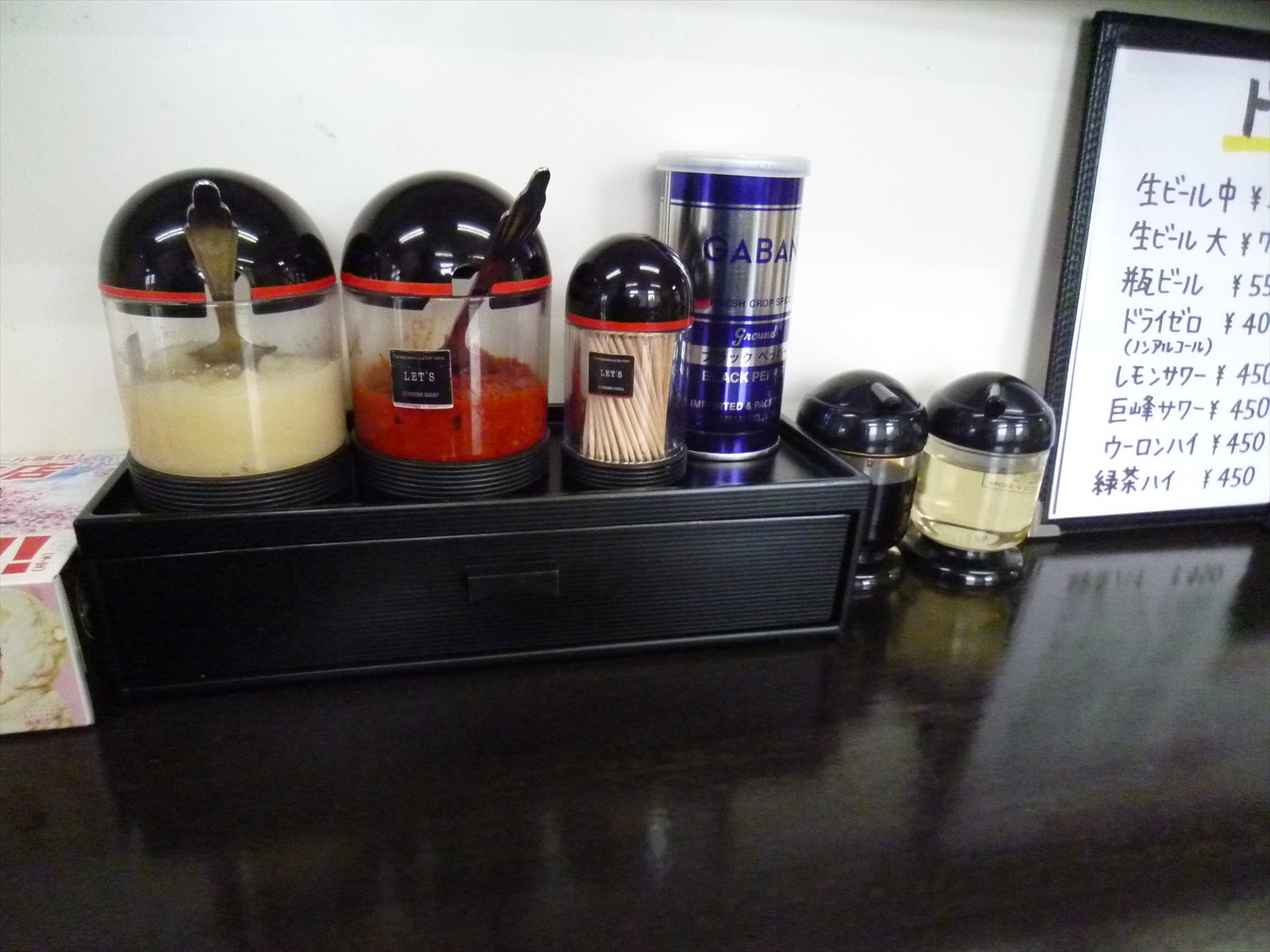 卓上は家系最低限といったカンジ。でもメニューによって調味料を出してくれます。