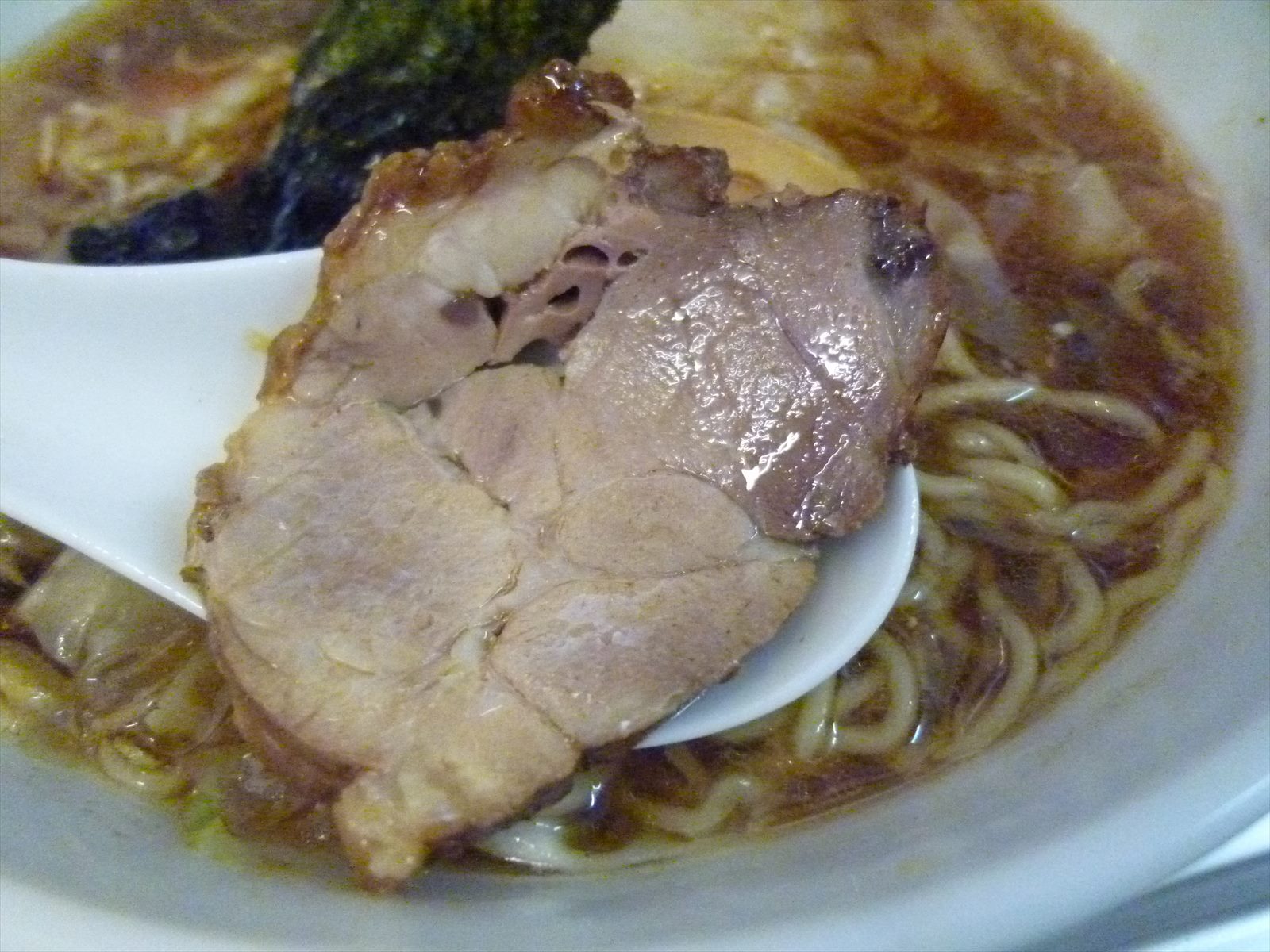 チャーシューはロースのスライス。しっかりした歯ごたえで肉の旨みが染み出てきます。脂がほぼ無いのも好みだなぁ。