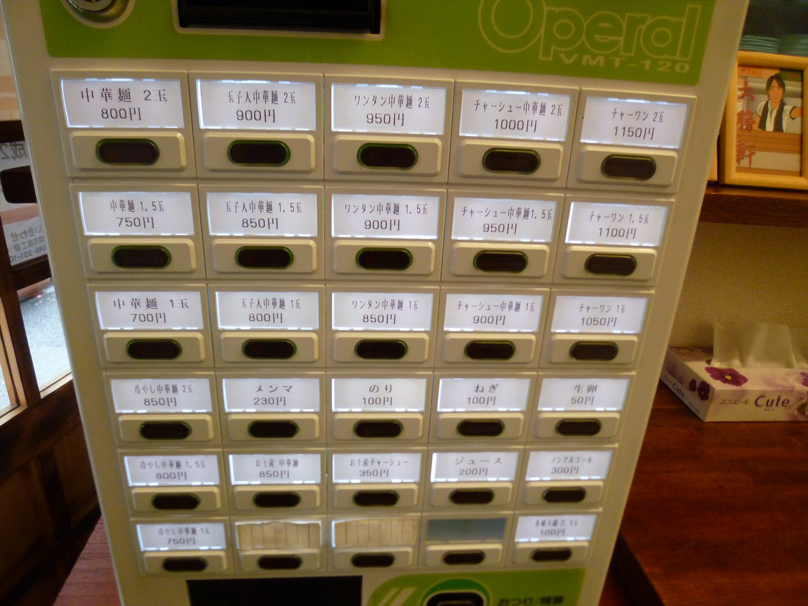 入って左にある券売機。永福町系といえば量が多いのも特徴のようでこちらでも2玉がトップに来ていますが1.5玉や並盛1玉も普通に選ぶことが出来ます。