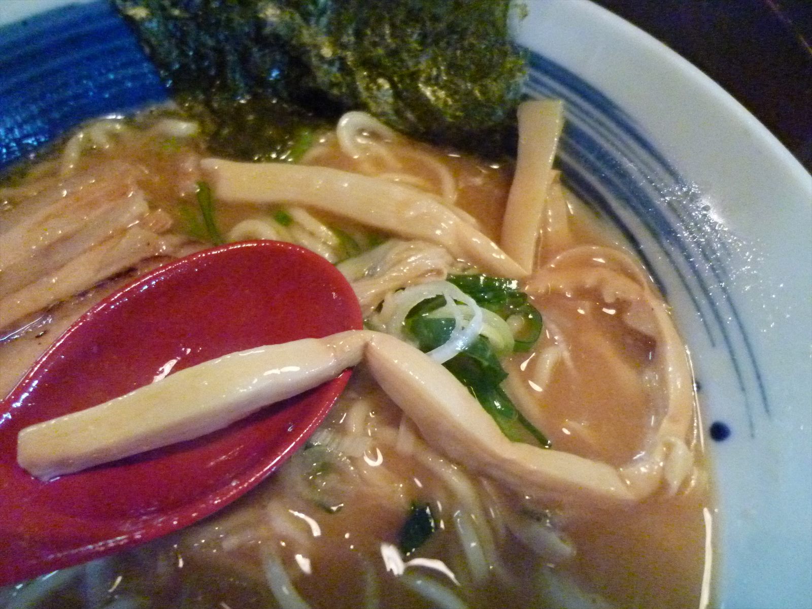 メンマはながーいのが2本。しゃくしゃくやわらかな穂先に根元の歯ごたえの違いが面白いですね。