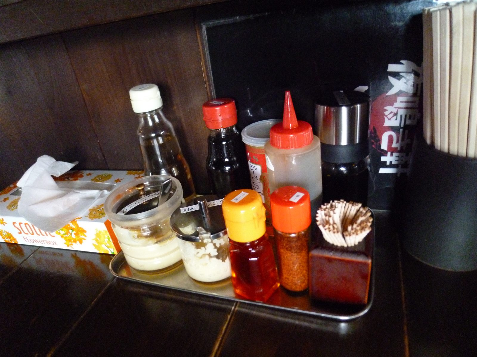 卓上調味料は豊富ですね。おろしにんにくに刻みにんにくも置いてあるのはニンニキストさんにはポイントが高いのかなぁとかぼんやり。
