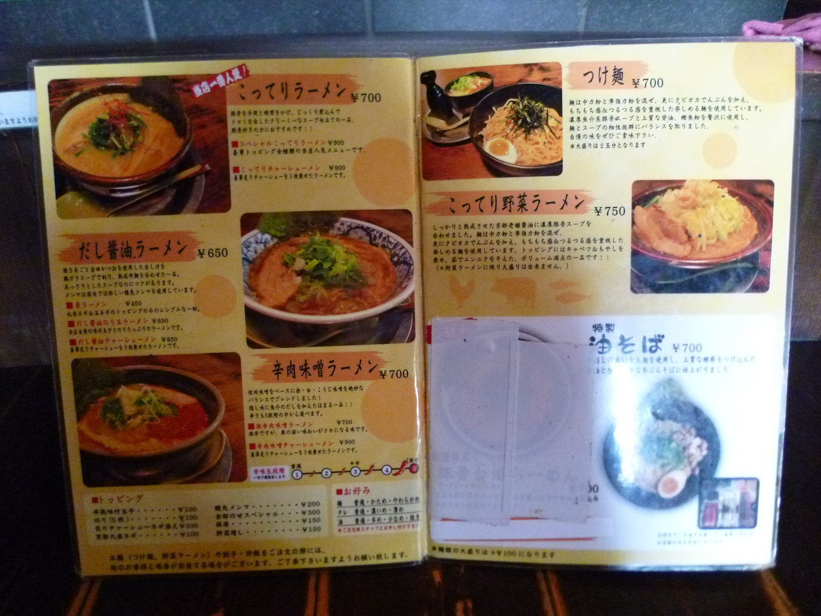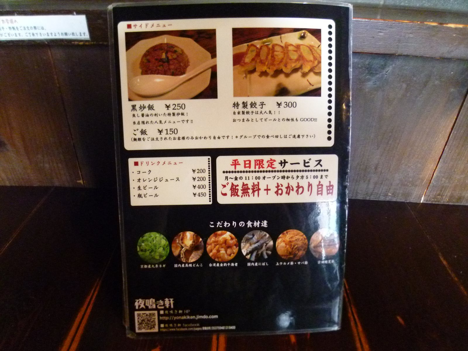 卓上のメニュー。これが常設基本メニューと思われ。外観写真にちらりと写っていますが店を囲うほどの鶏白湯の幟が反映されてないことからイロイロと挑戦しているのが窺えます。