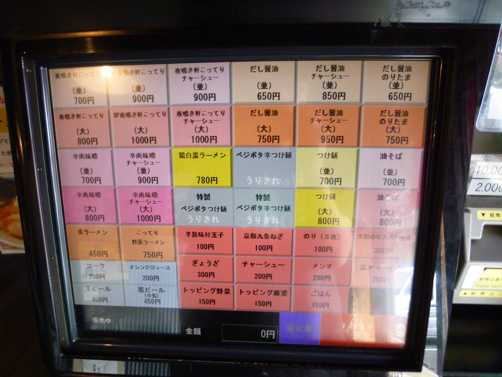 入って右にある券売機。ほぼ6年ぶりなんで何を今更なんでしょうがタッチパネル式になってたんですね。おそらくはしばらく前に変わったように見えますがあちこちタブを変えなくていいのは分かりやすいです。
