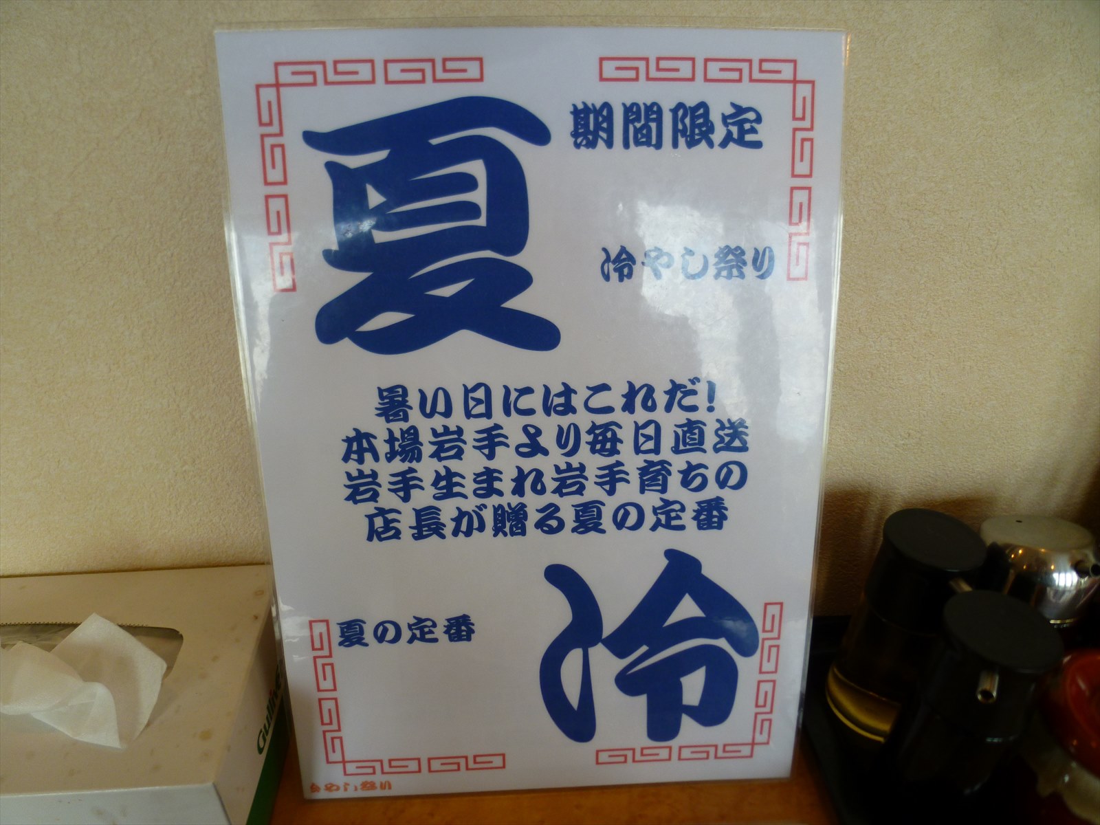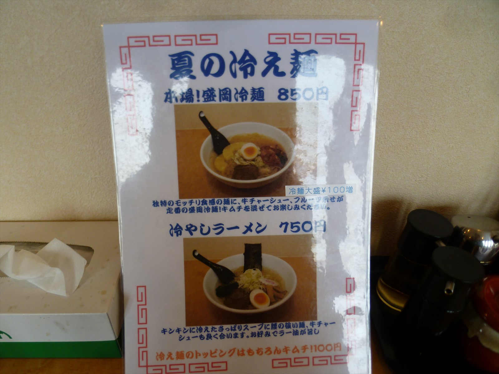夏の冷やしもやってるようで。冷麺が気になるけどそば粉が入ってるとそばアレルギーの身では食べられないのでちょっと怖くて手が出せないなぁ。