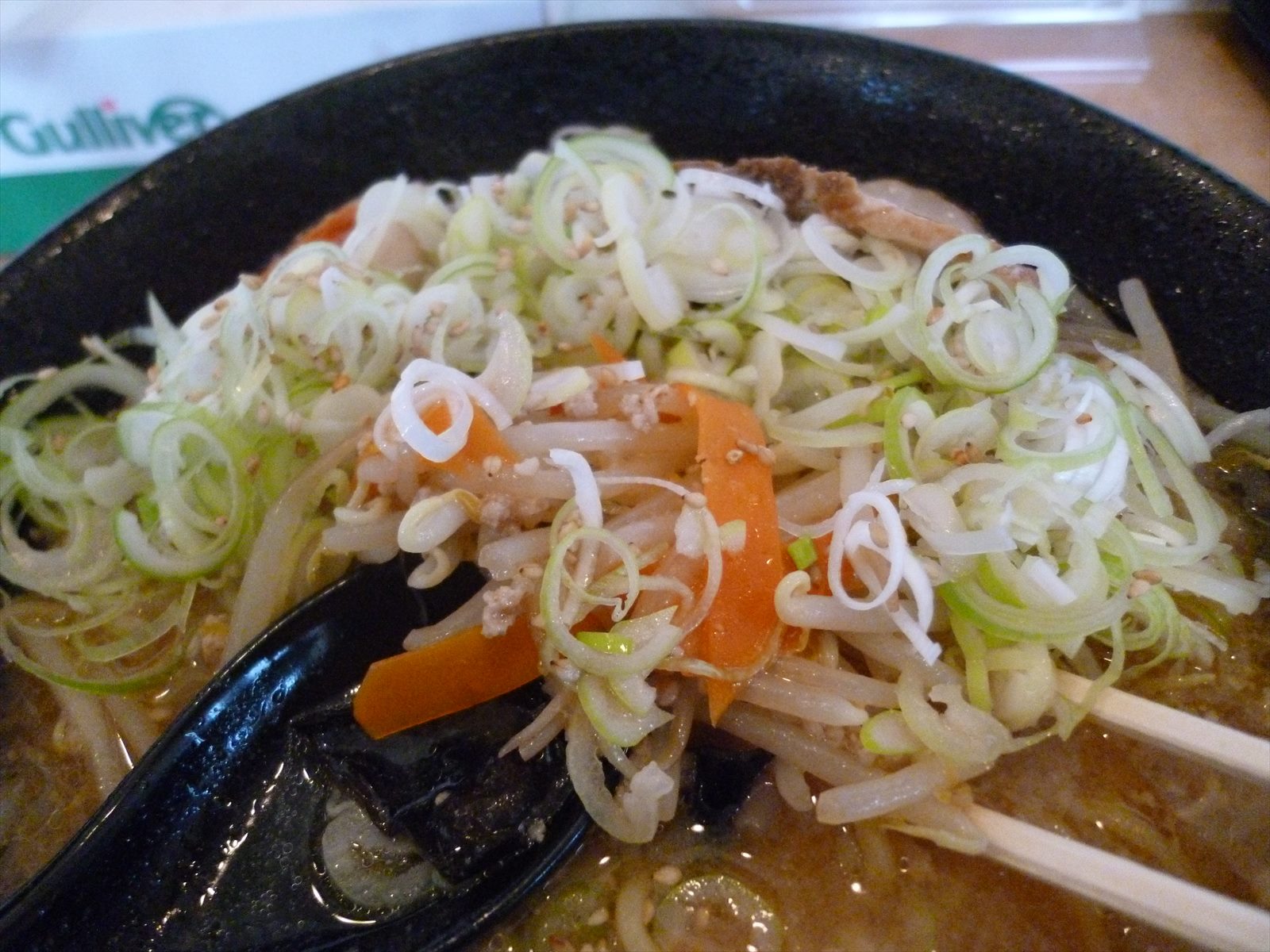 スープはさらりとした口当たりにまったりした味噌。鉄鍋調理で野菜の甘さは出てますが増額分である”焼き”味噌の部分は感じなかったかなぁ。普通に美味しいんですけどね。