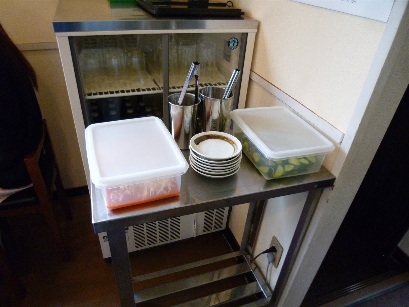 お漬物はきゅうりの浅漬けともやしのキムチ。店主自らの仕込みらしく家庭的に思えました。