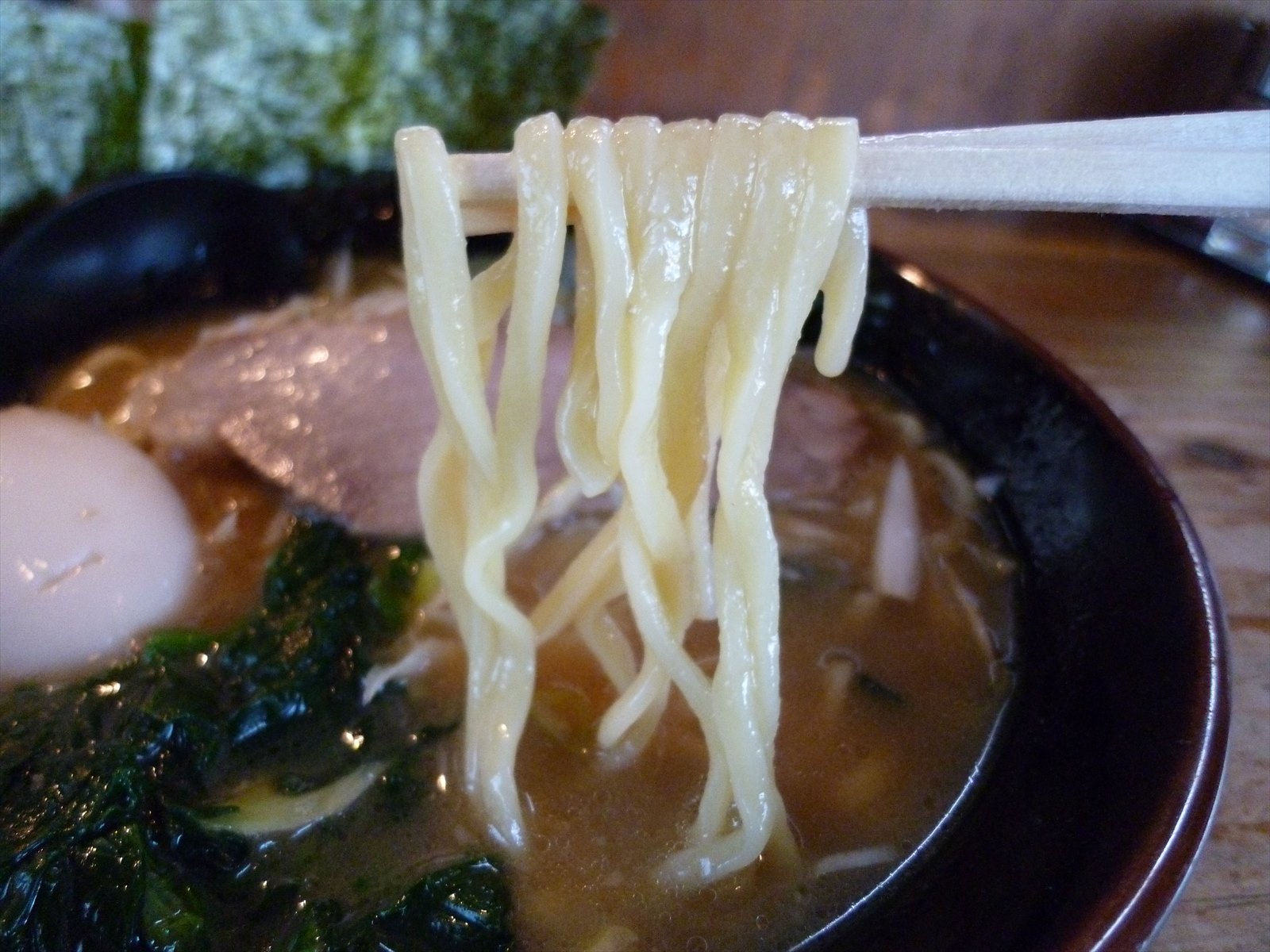 麺は家系王道酒井製麺の中太平打ち。若干柔めもちもちしたこの加減こそこの麺の良さを引き出しているように思います。