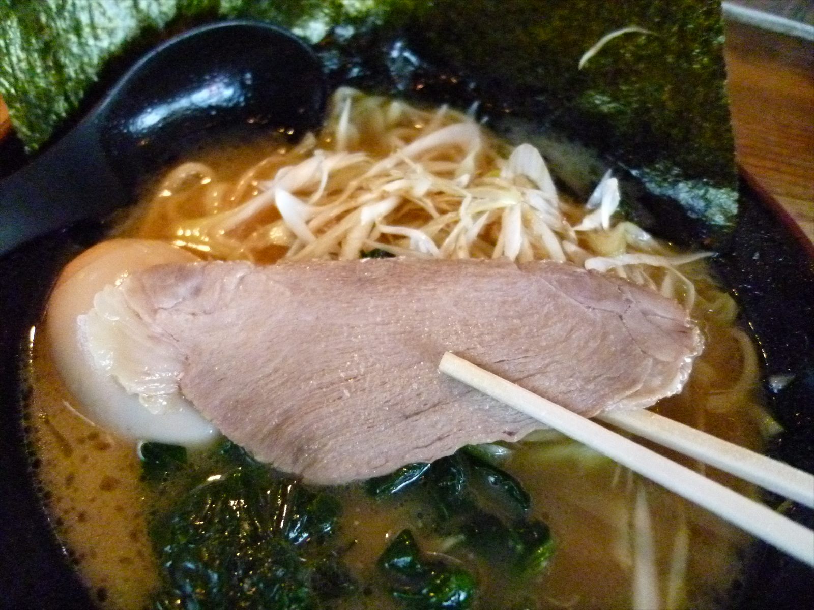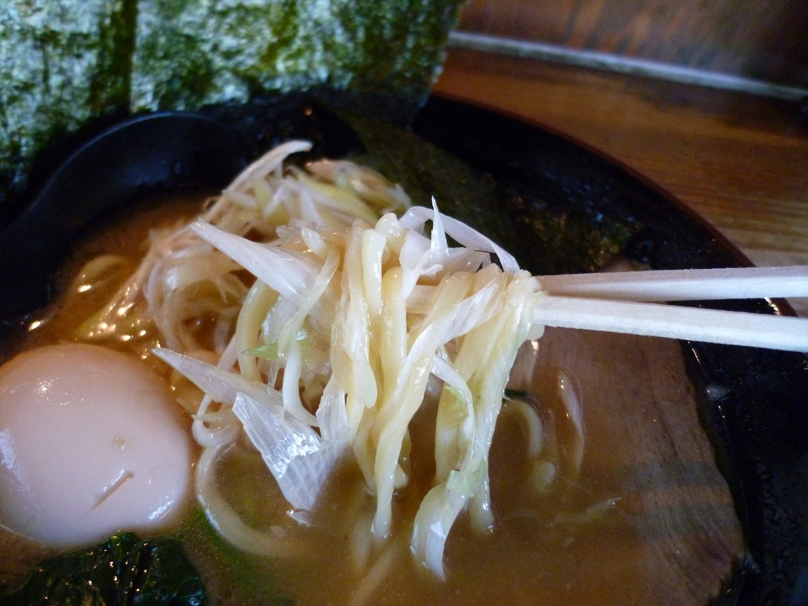 ネギラーメン・油少なめ¥900+半熟味付玉子¥100