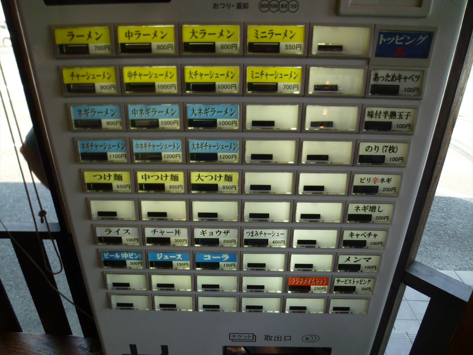 入って右にある券売機。横浜家系とんこつ1本勝負は今後も変わらないんでしょうな。