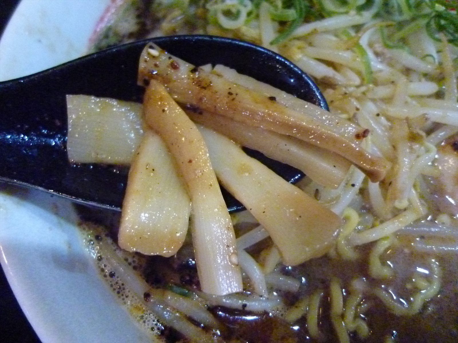スープの素性が分かりにくいですが甘さを感じる味噌に相反する苦味をまとった焦がしニンニクオイルがレンゲの中でぶつかります。かなりワイルドですが食欲を刺激する加減に留めてるのが好みですね。