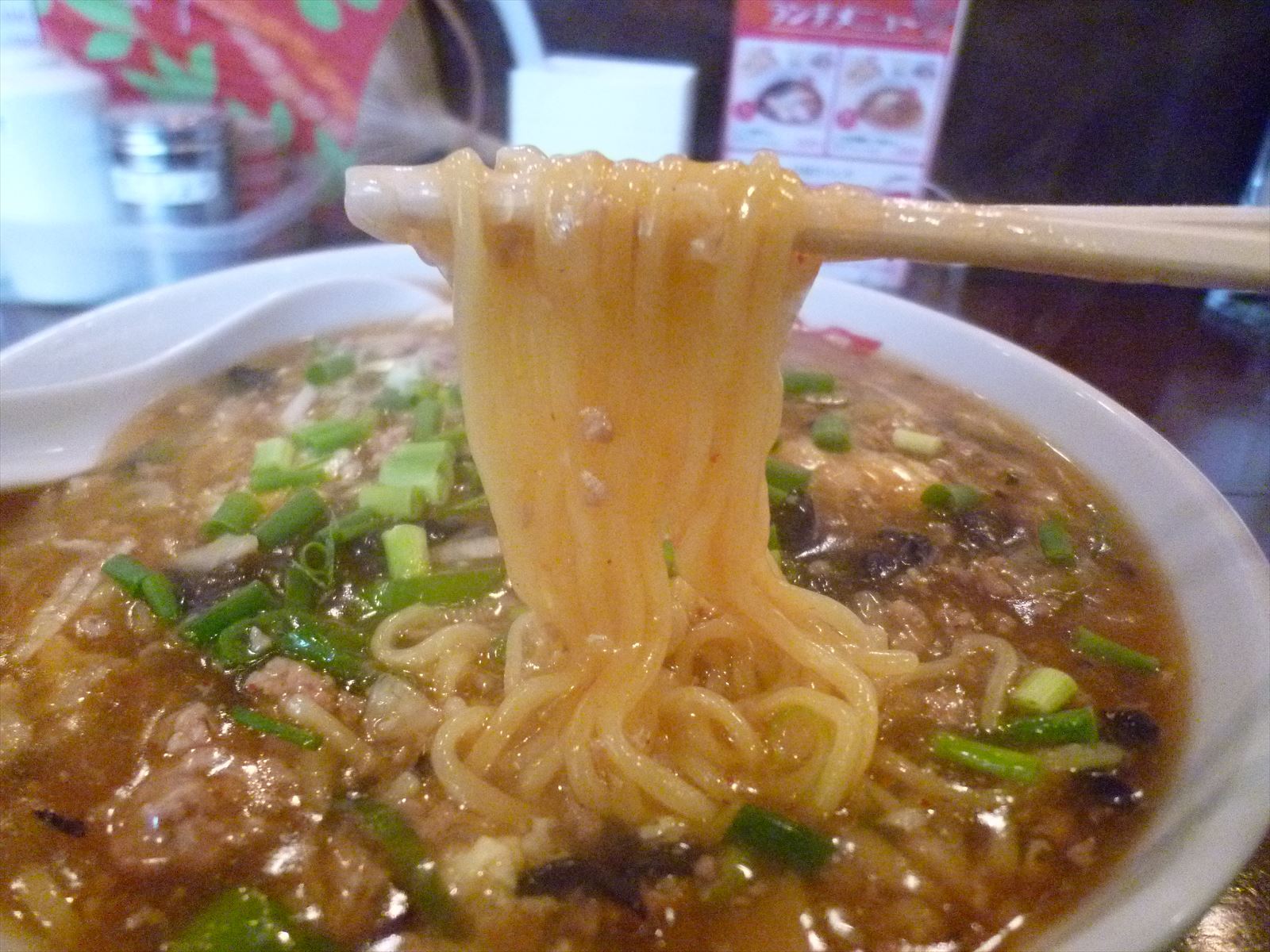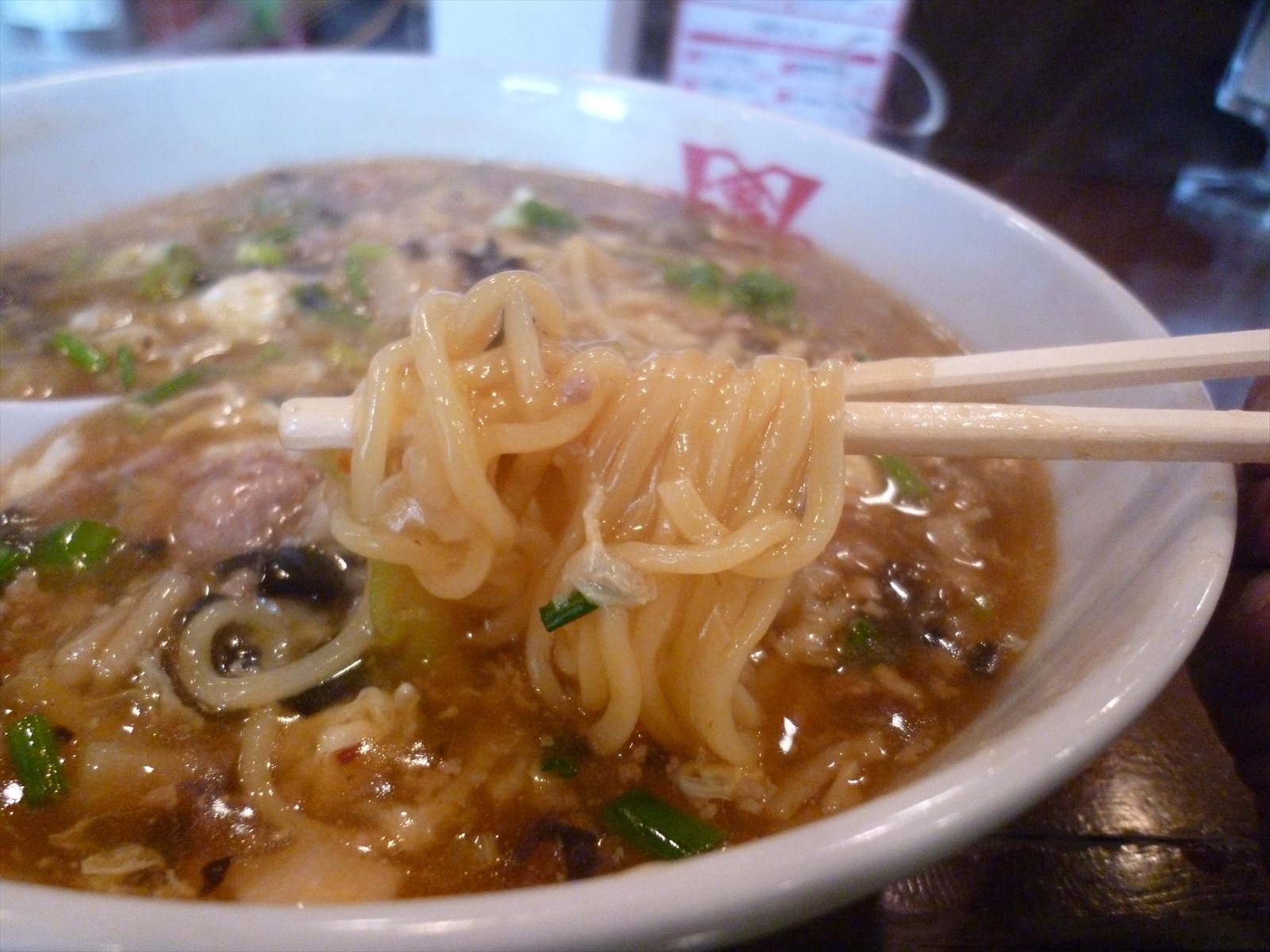 麺はいわゆる中華麺に思える多加水中細ほぼストレート。あまり固めには思えなかったんですが熱々な餡の中でもダレることなく食感を保っているように思えます。