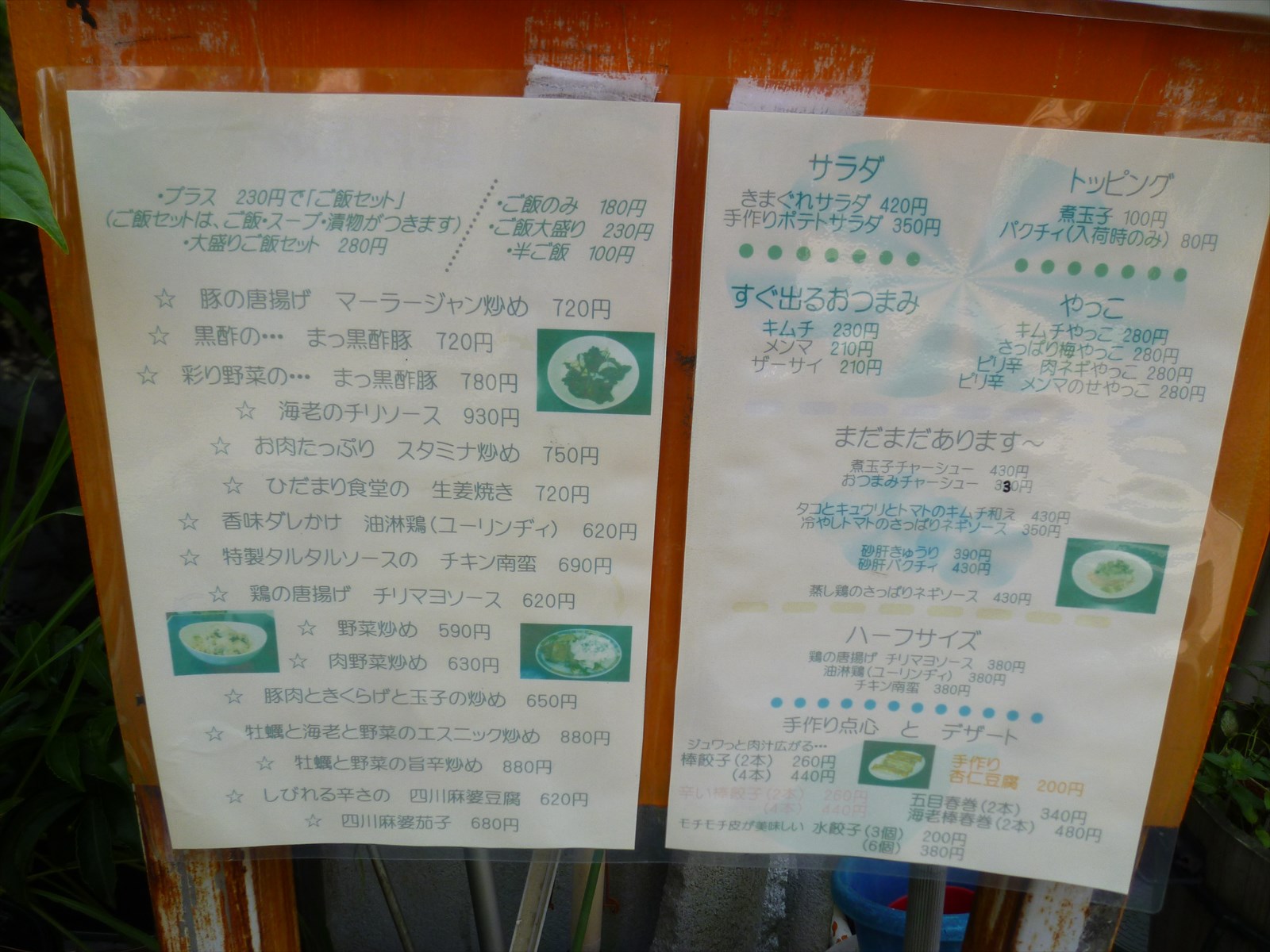 夜メニューも店頭にあったんで参考までに。おそらくはこれ以外にもあるんだろうと推察できます。
