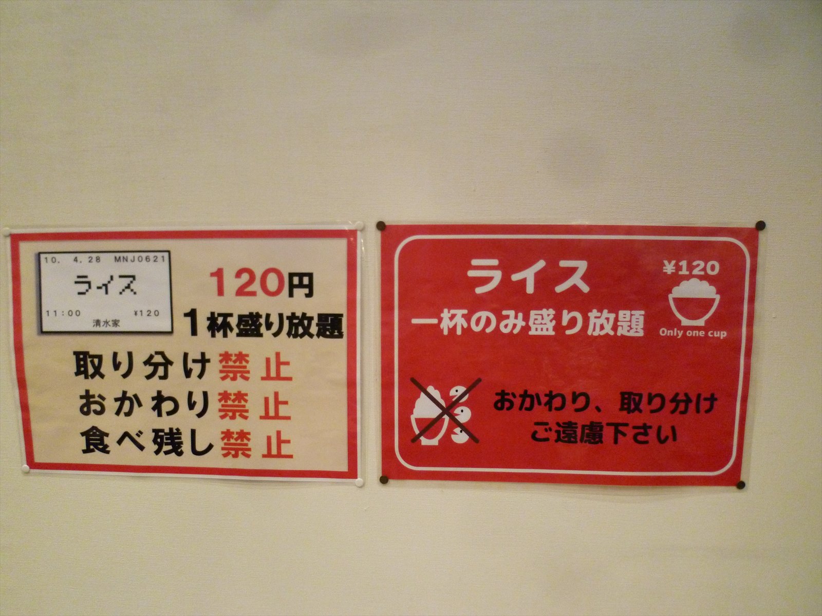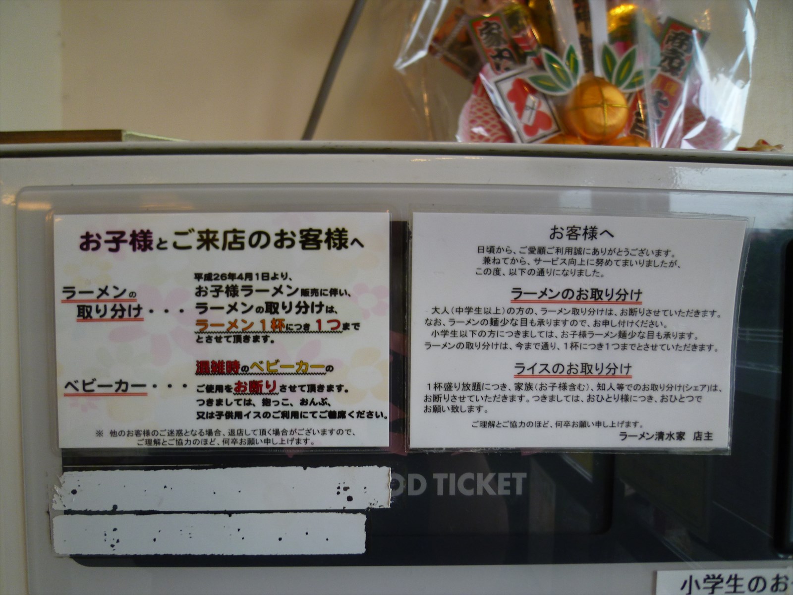 券売機の上にあった注意書き。あったりまえのことしか書かれてないんですがそれでもこんなものを貼りださなければいけないお店の苦労は察するに余りあります。