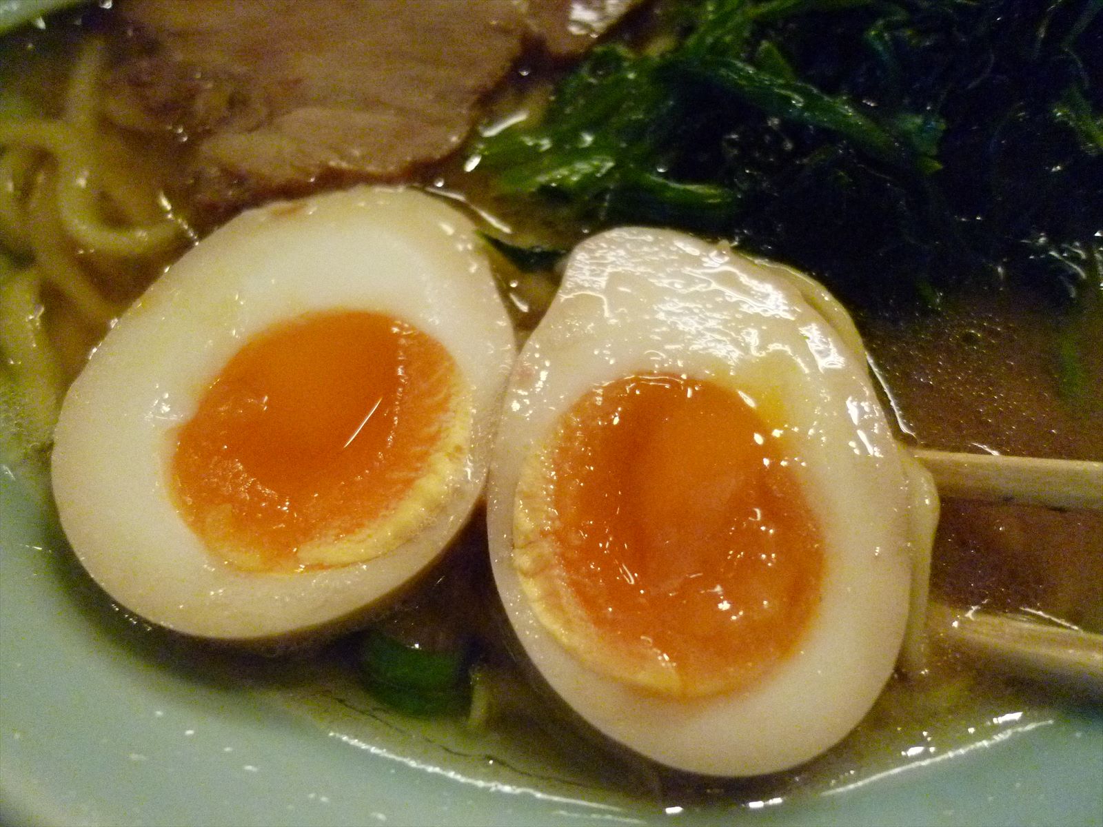 味玉はキリッと利いた塩気を生の部分も感じるくらいの黄身が中和しきれないくらいの加減でインパクトなってます。かなり濃い味なんで半分はラーメンのお供に、もう半分はお楽しみに。