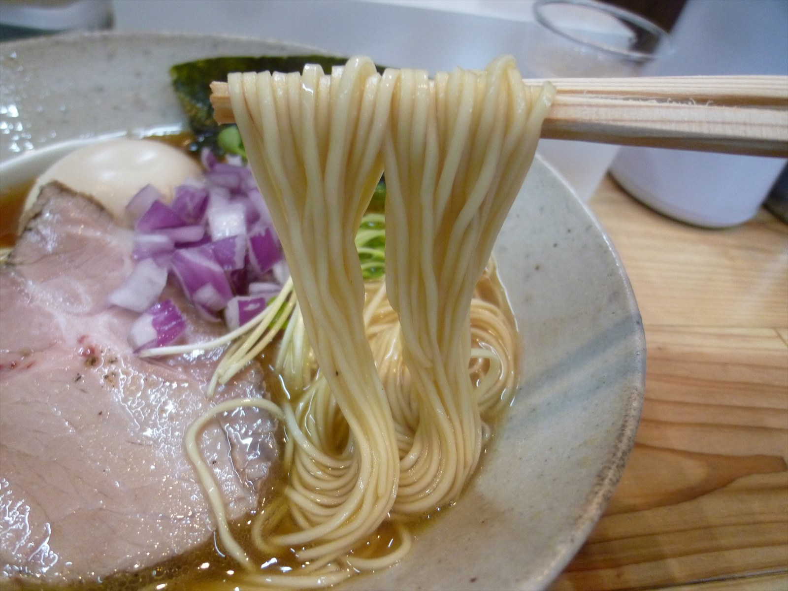 わずかに魚粉らしき粒が見える澄んだスープはガツンとくる煮干しの風味に魚介だけとは思えないほどの土台の強さとあとくちにすこーし苦味が返ってきます。これはすげえな。欠点とされるクセまで取り込んでパンチに変えちゃってるんだ。