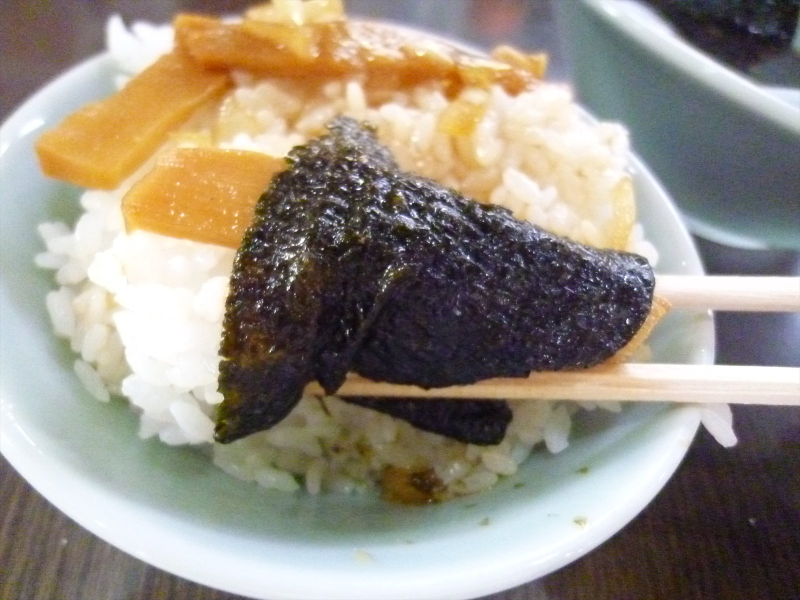 そしたら海苔を二つ折りにしてスープをよーく染みこませてメンマごと。そしたら白飯のウマさがより引き立っちゃってさ、でかした!おれ!