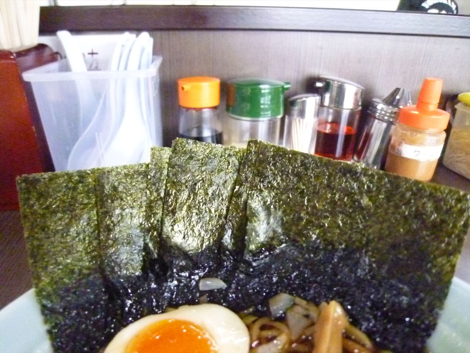 濃い口煮込みのデフォルトは海苔が1枚。マシトッピングで計6枚。