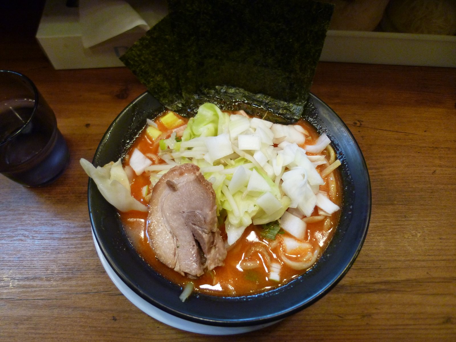 野菜はキャベツともやしに大ぶりカットの玉ねぎが上からバラバラ。もやきゃべはキャベツ7割でさっと茹でた甘さと食感が激辛スープの待避所に。反対に玉ねぎは生でネギ辛くスープに浸して熱を通すと今度はスープの辛さが移ってくるとどうすりゃいいの状態で。まぁあったほうがいいんですけど。