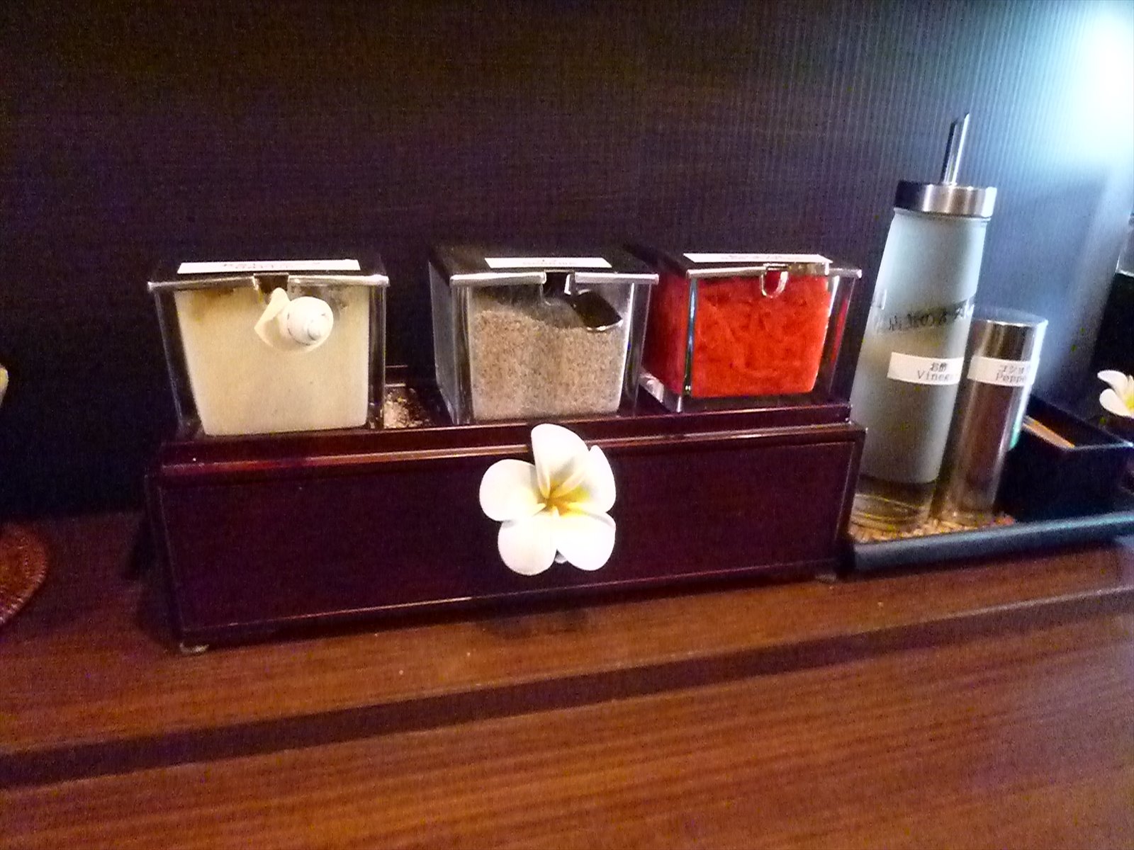 卓上には胡椒・ニンニク・紅生姜・お酢。お酢は店主おすすめの味変えアイテムだそうで。