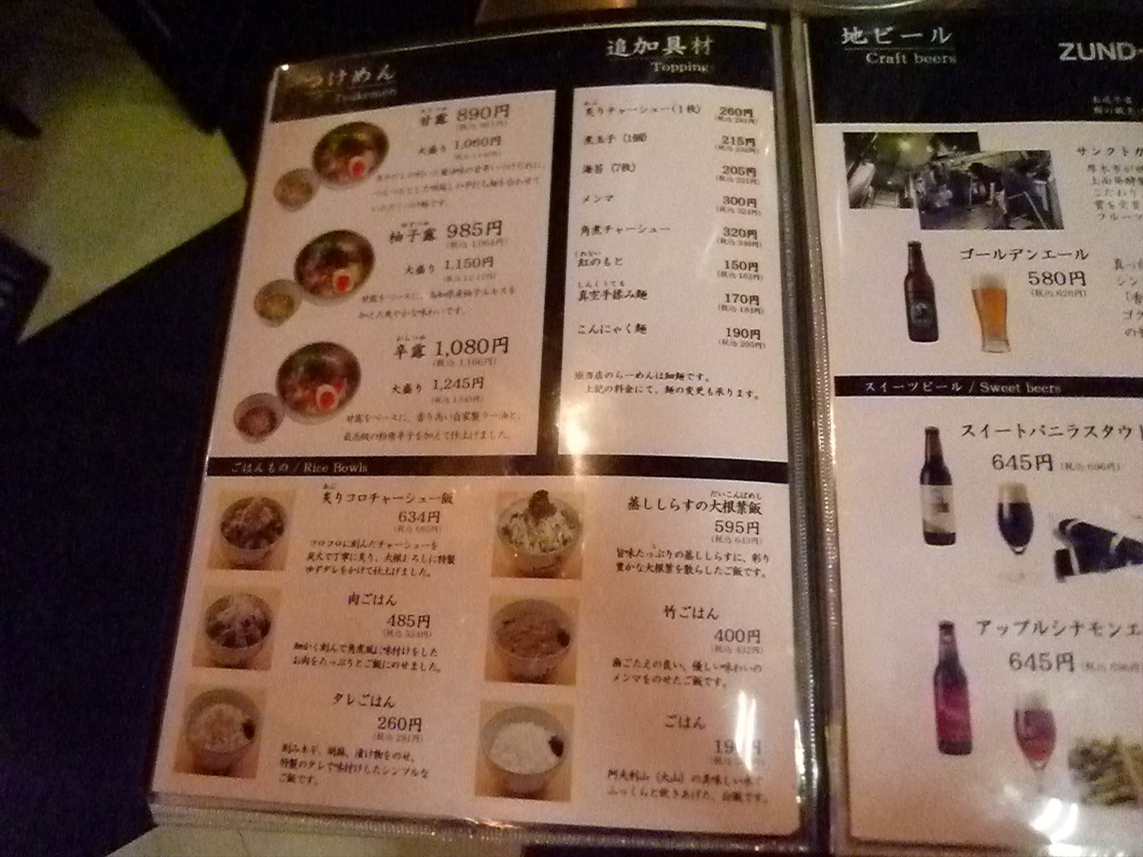 次のページにはつけめんにトッピングとご飯もの。ご飯ものの限定もよく出ています。