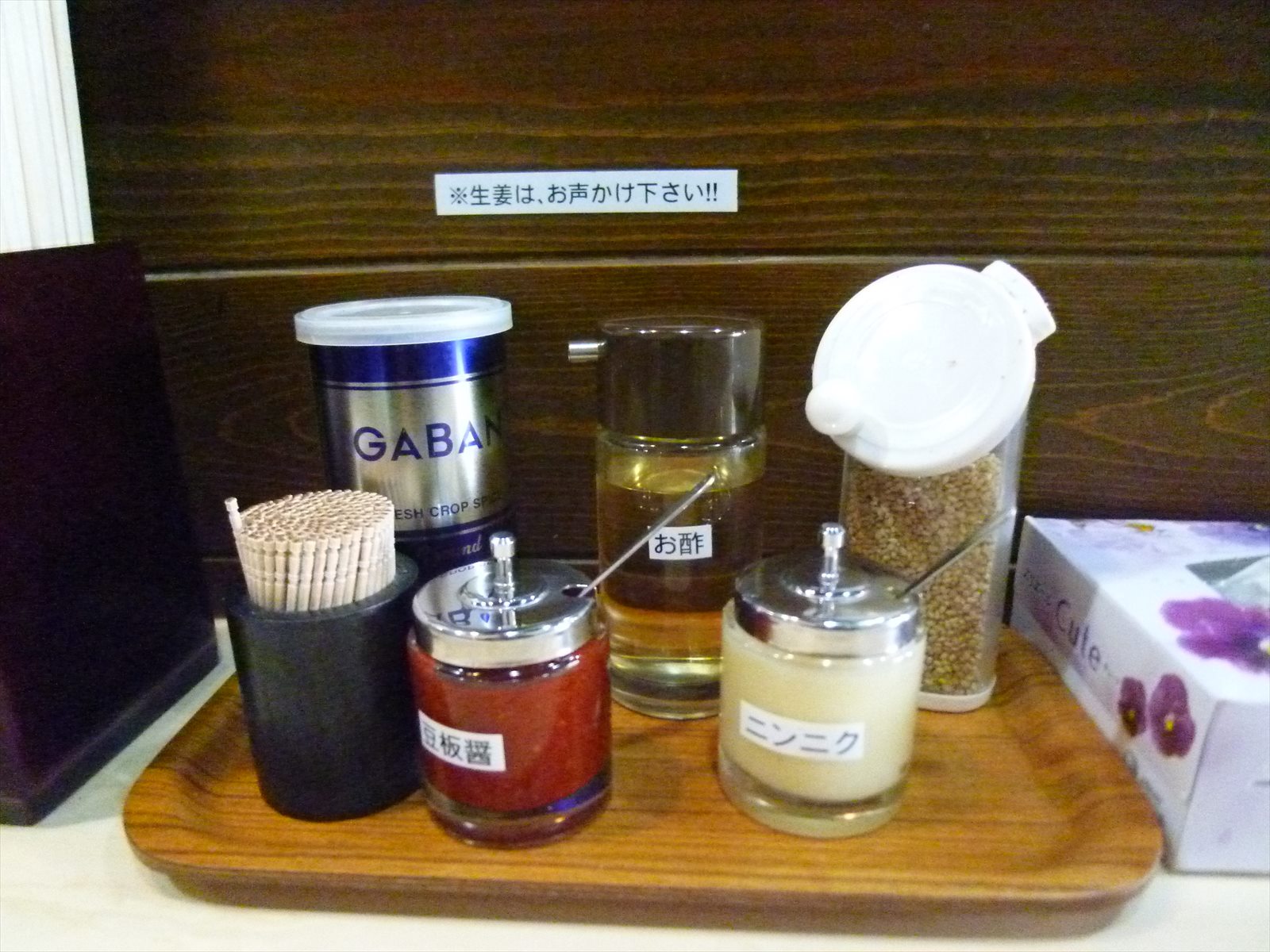 卓上調味料は家系普通な顔ぶれですが言えば生姜も出してくれるみたいです。これは衛生面での配慮なのかもしれませんね。