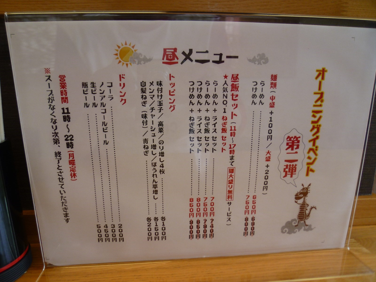 ちょいっと前の訪問なんでイベントは終わってるかもですが訪問時のメニューはこんなカンジでした。他にも日替わりで無料サービストッピングがあったり飯セットは麺大盛り無料のサービスがよく見ればそこいら辺にあったりします。