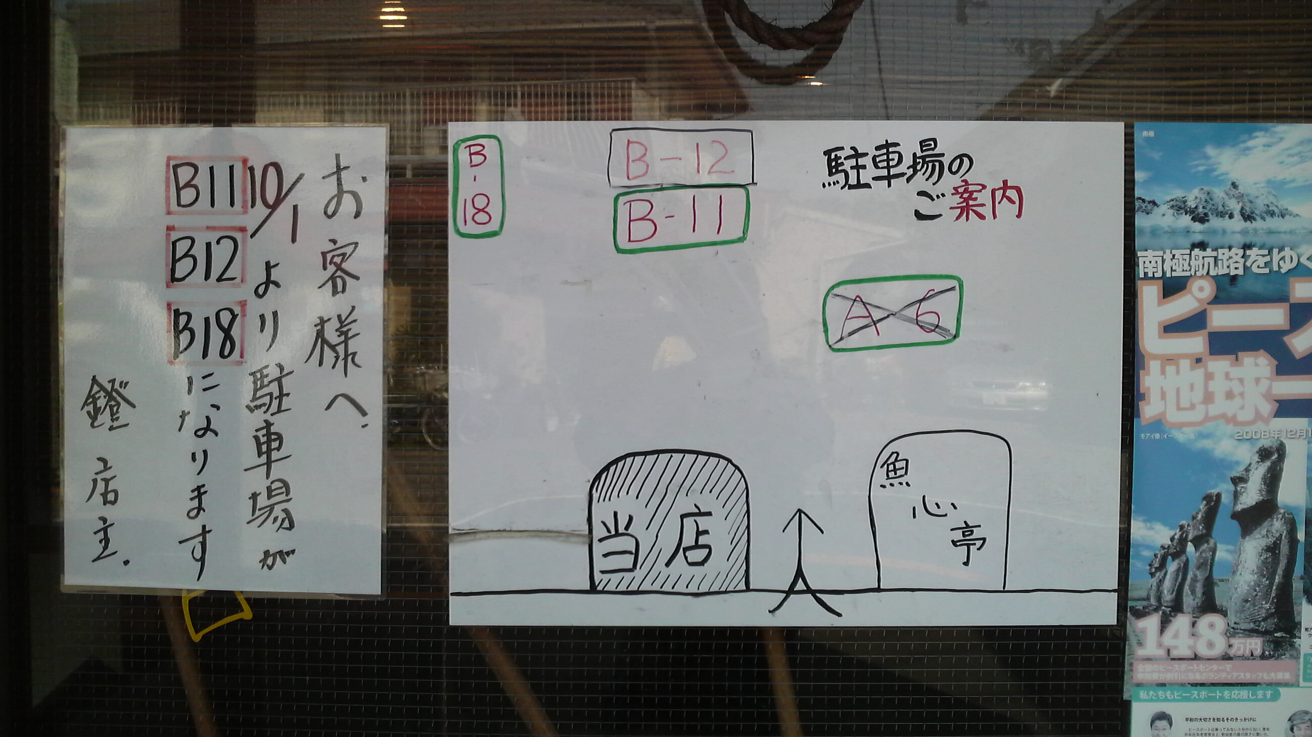 駐車場:無し(周辺コインPもちょっと歩く、店の前に公共の駐輪スペース)