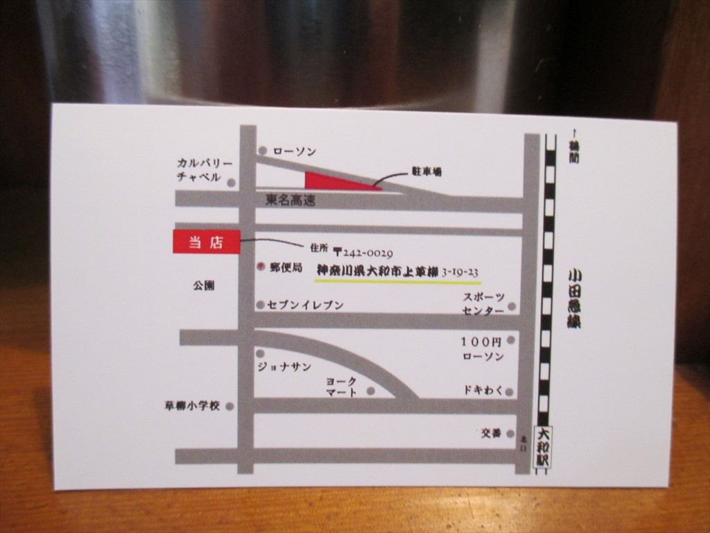 駐車場:店より東名高速ガードくぐって右に曲がり少し進んだ三角地 約20台
