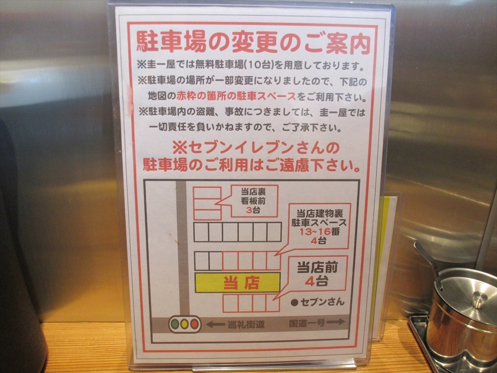 駐車場:店の斜め向かいと近隣コインパーキング利用でサービス券