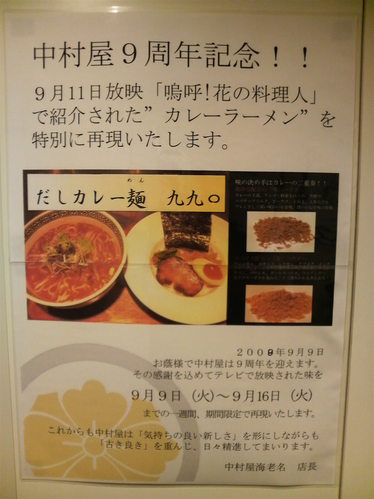 今まで頑なに封印してたカレーラーメンを出すという事で。