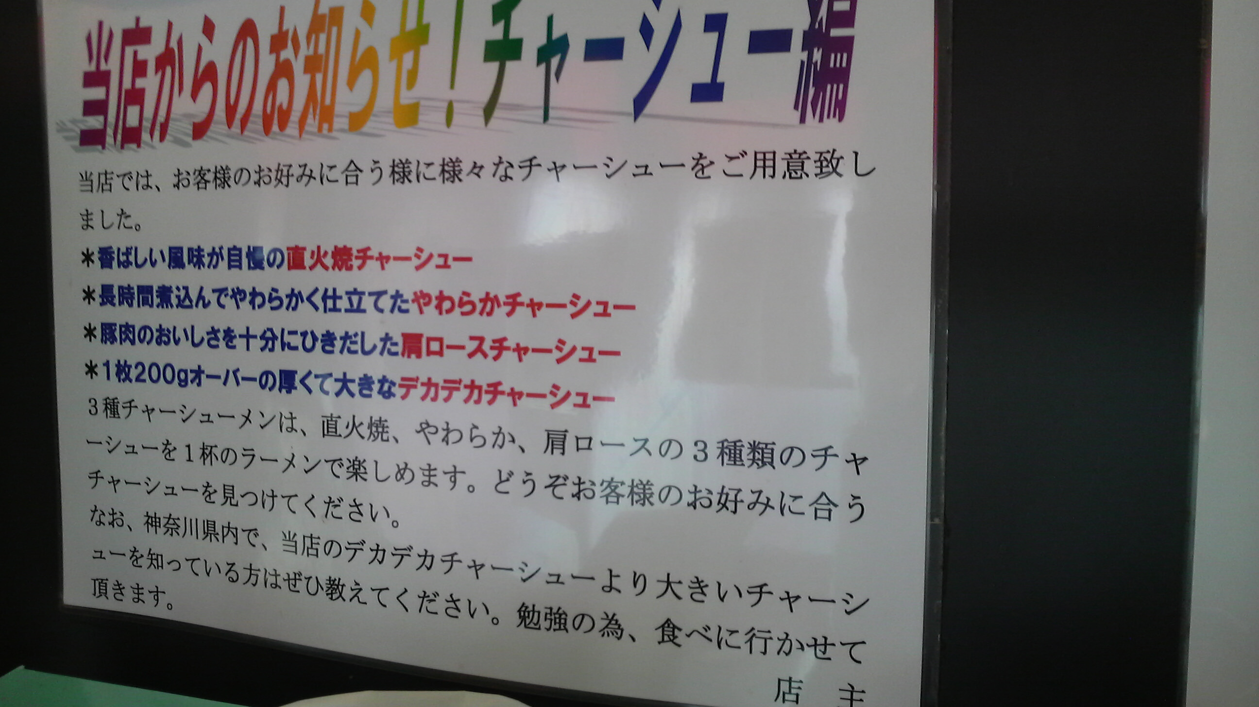 ここほどあちこちにチャーシューの単語を見る店も無いです。