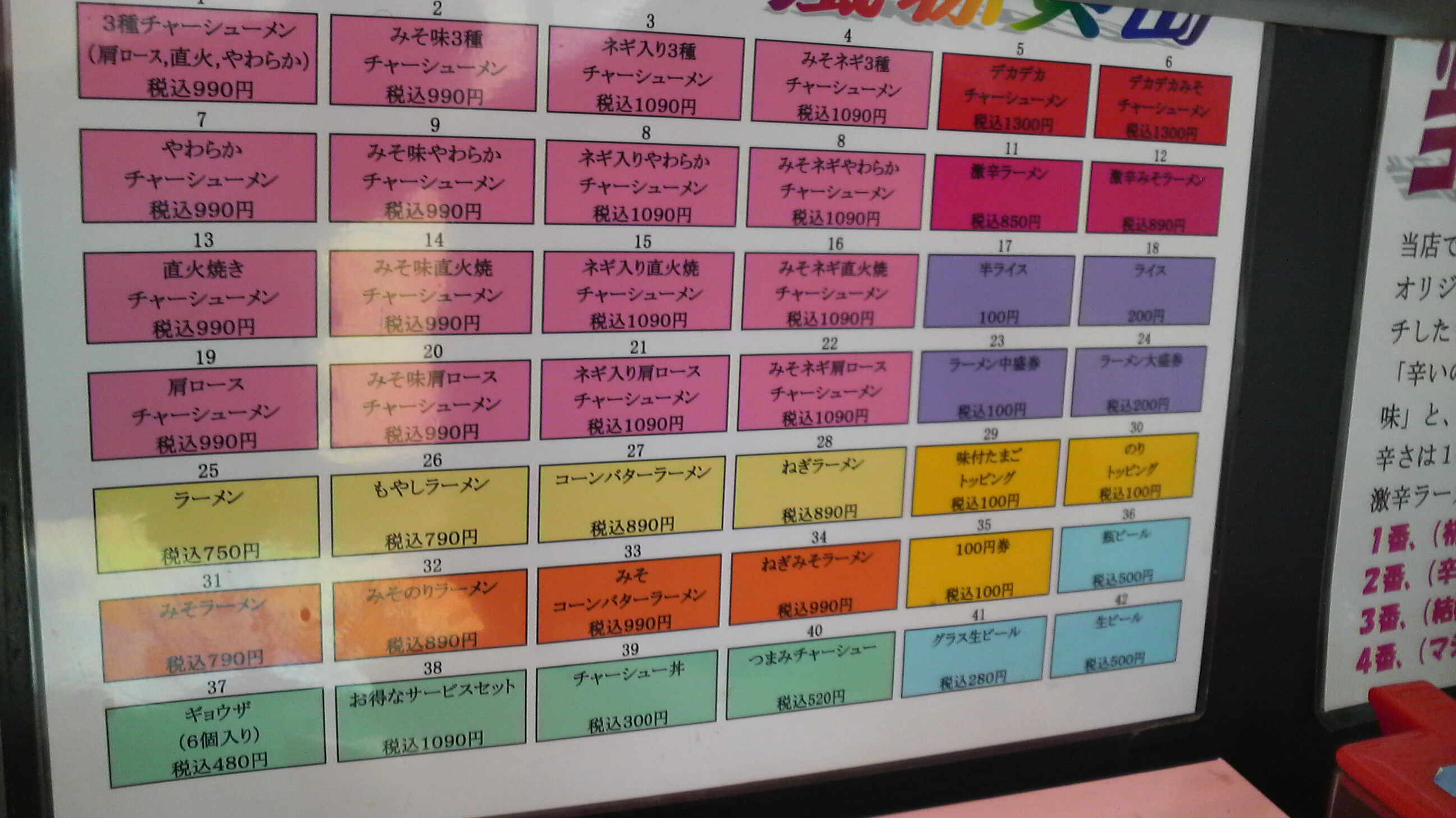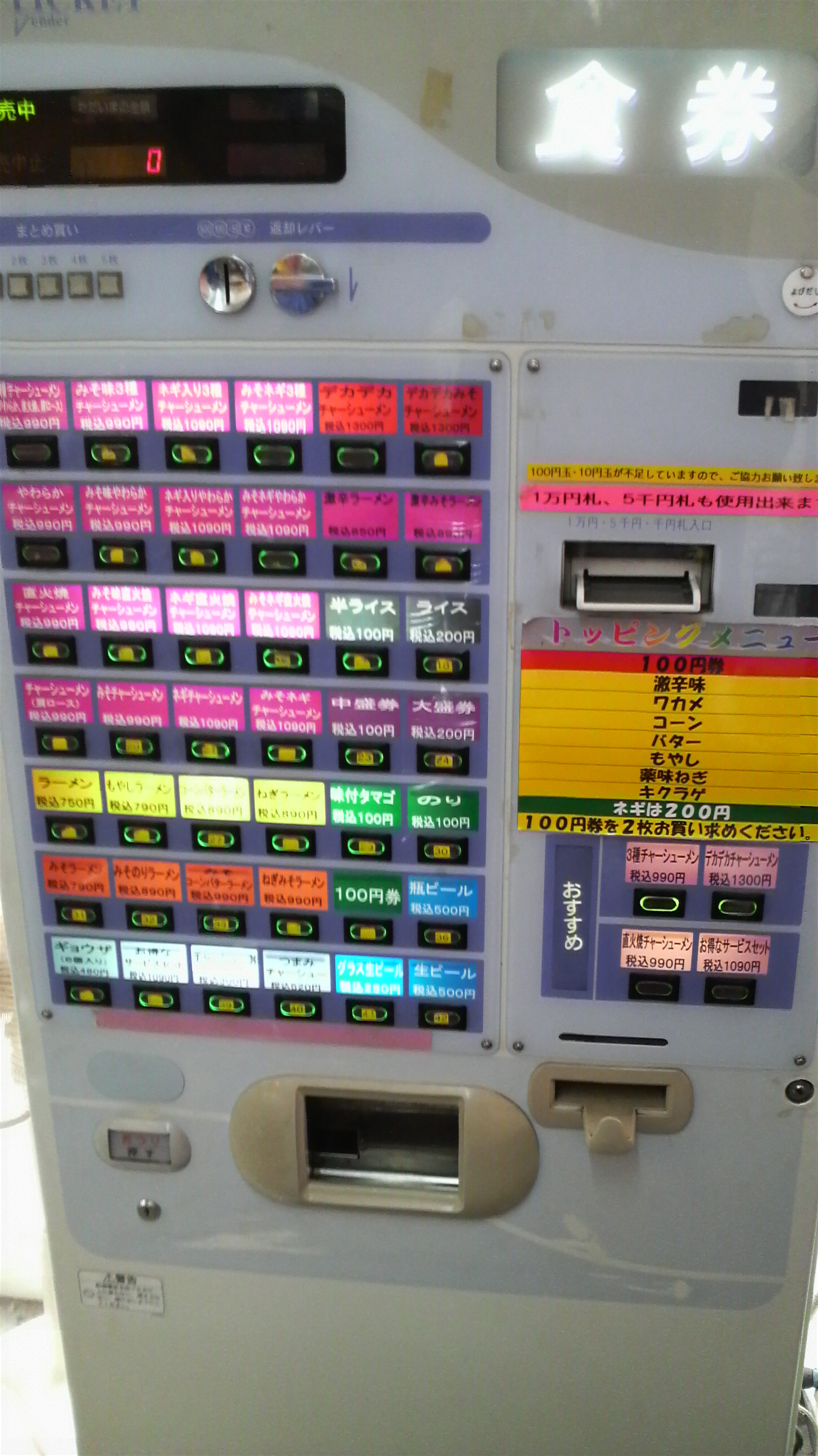 券売機の写真からはメニューがわかりづらいですね。