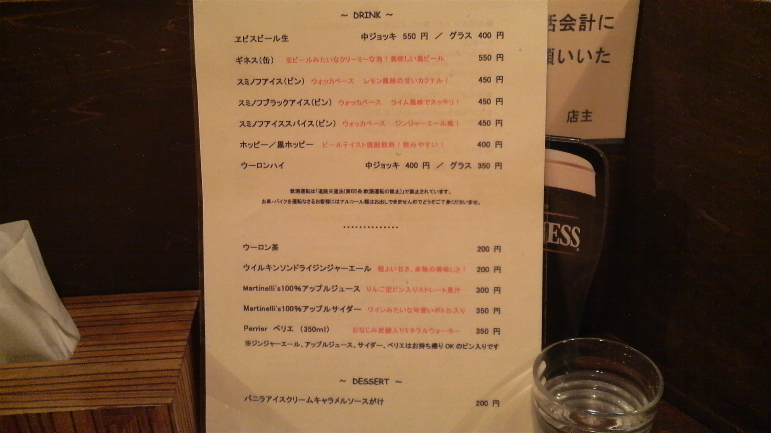 裏面はドリンクでした。夜だったんで同行者に運転を任せていっちゃおうかなと