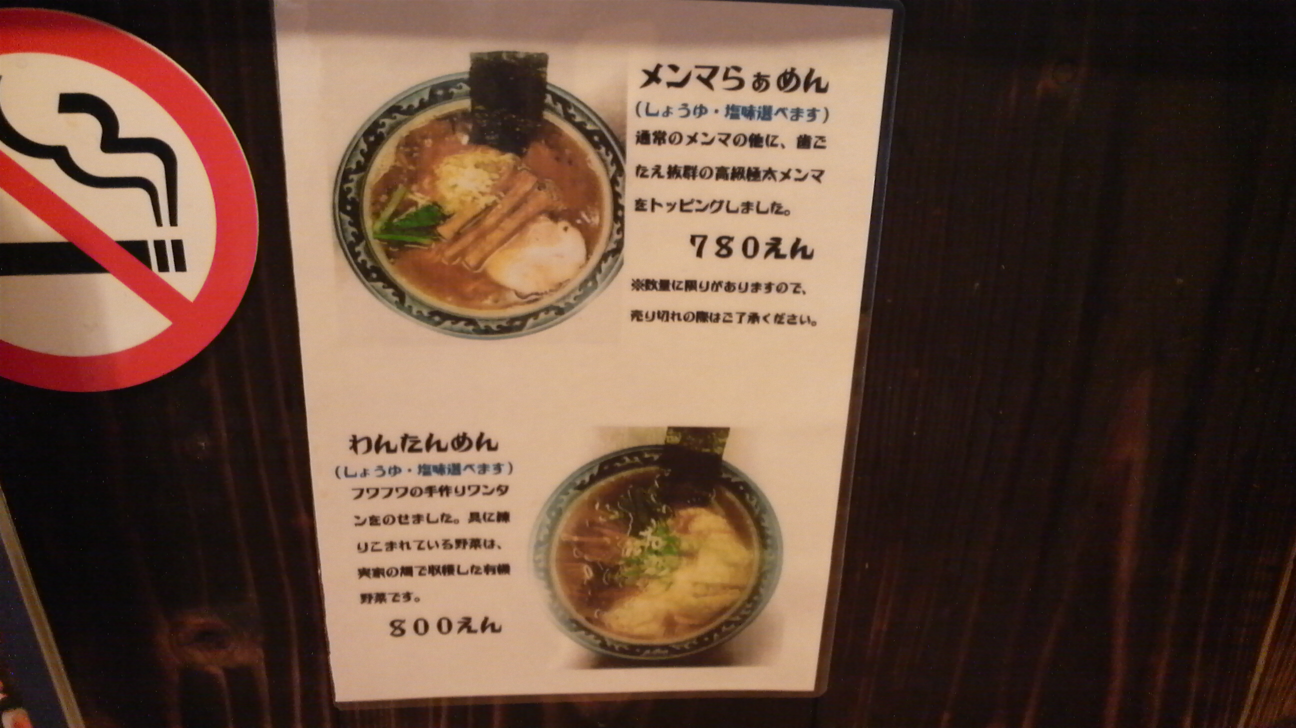 お品書きにちょっとした追記があって、竹の子らぁめんがメンマらぁめんに名前が変わってました。