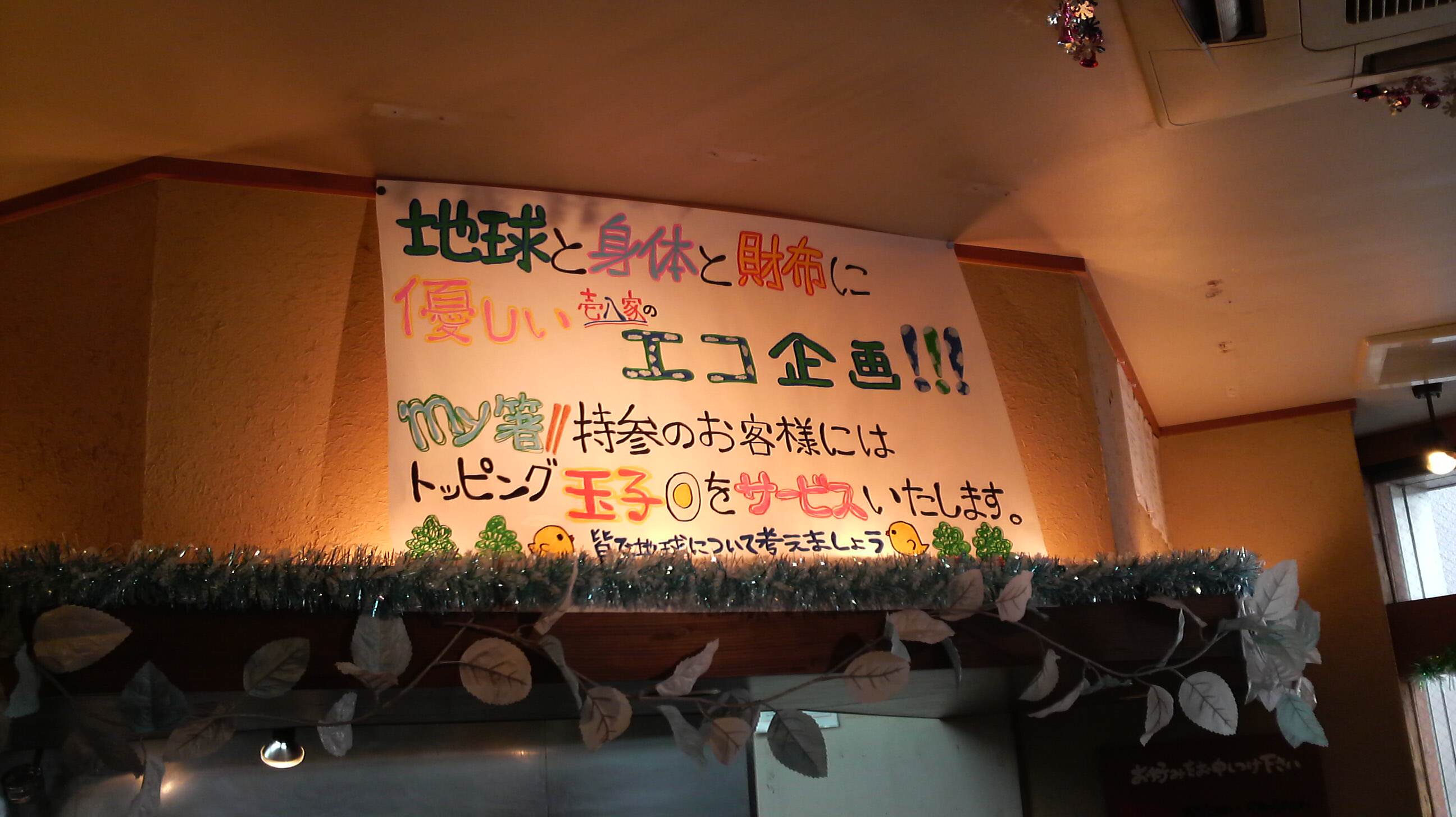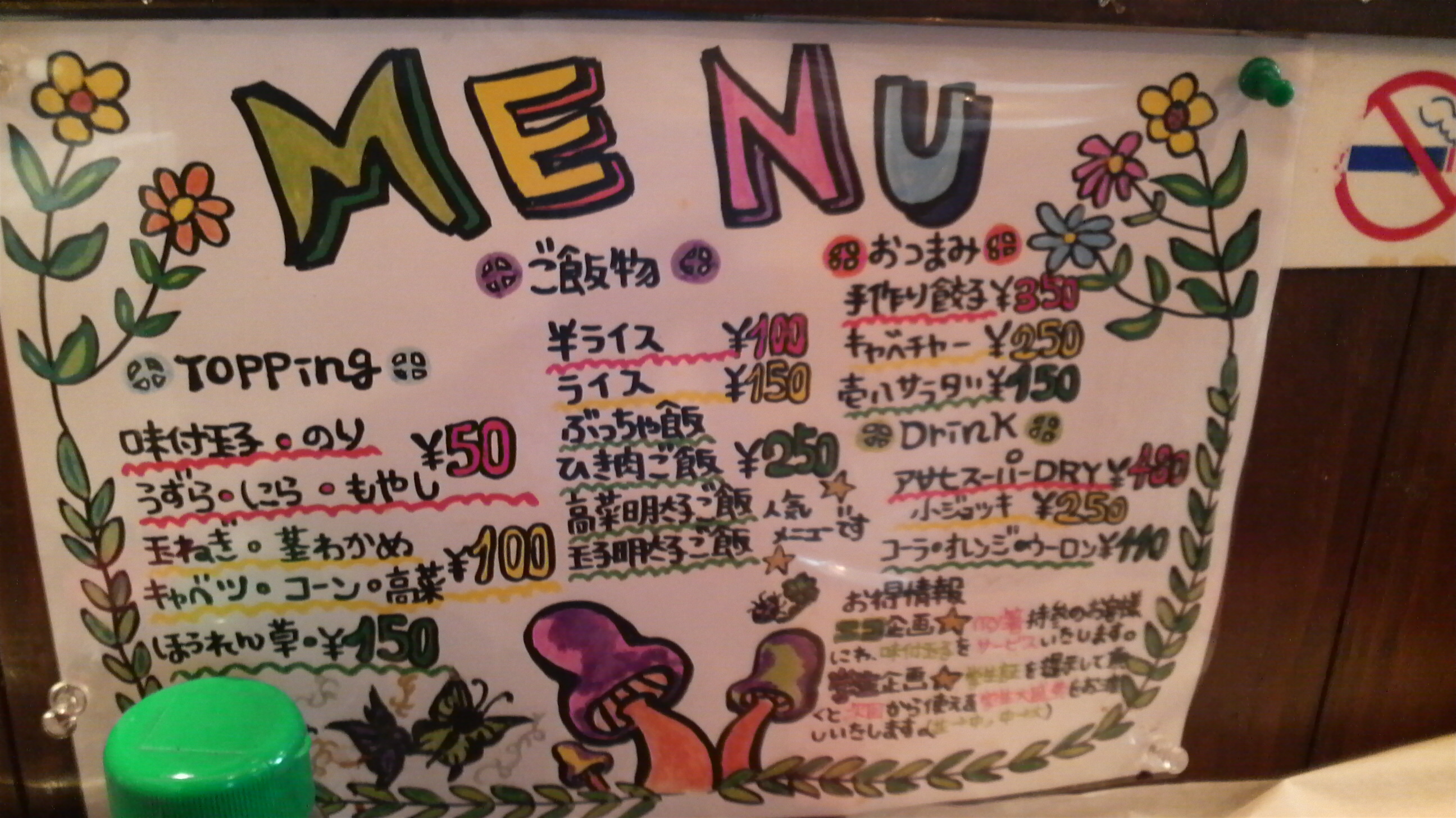 よ〜し!俺も次はmy割り箸持参で行くぞ〜☆卓上にもメニューが貼ってあります。