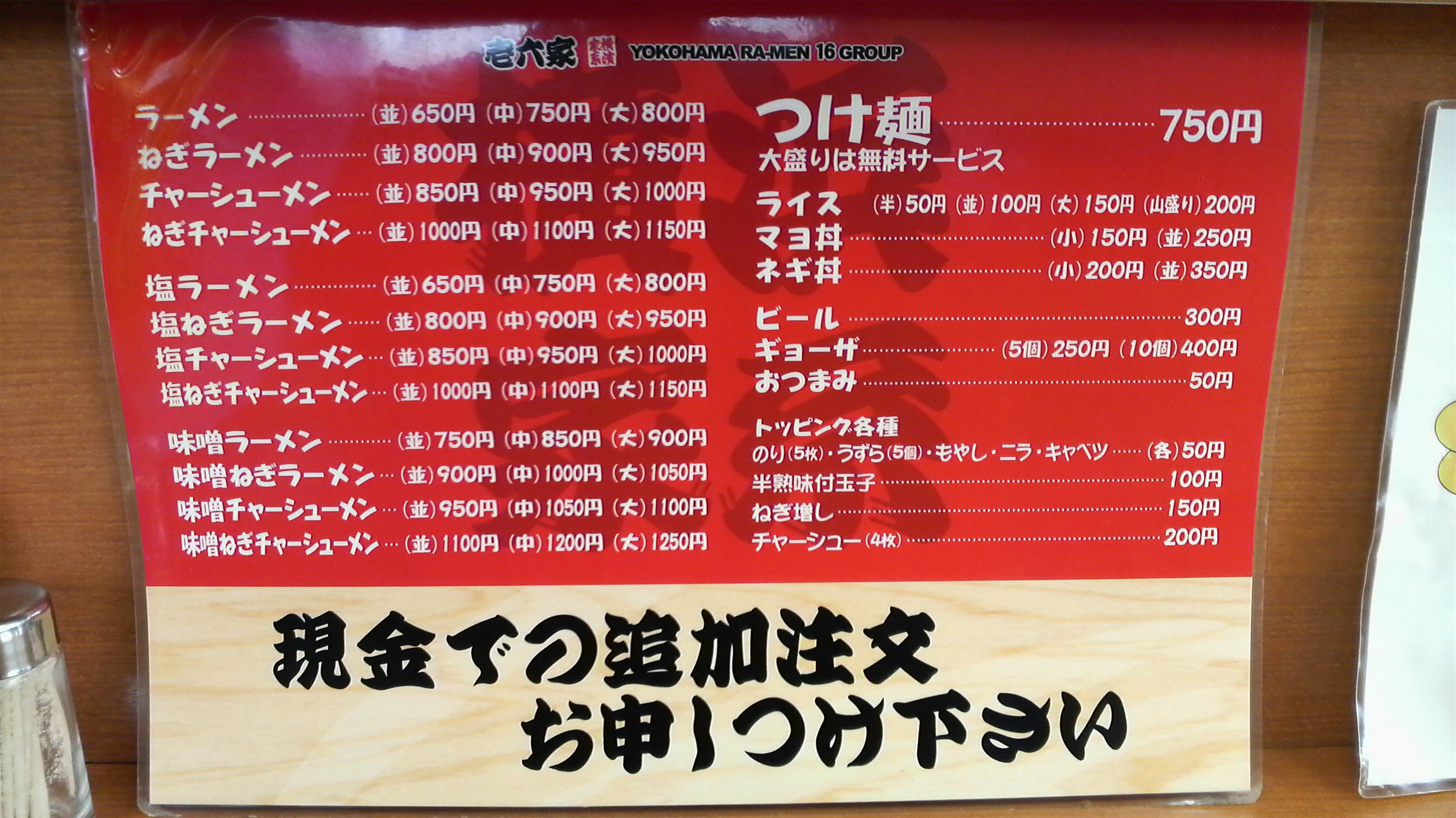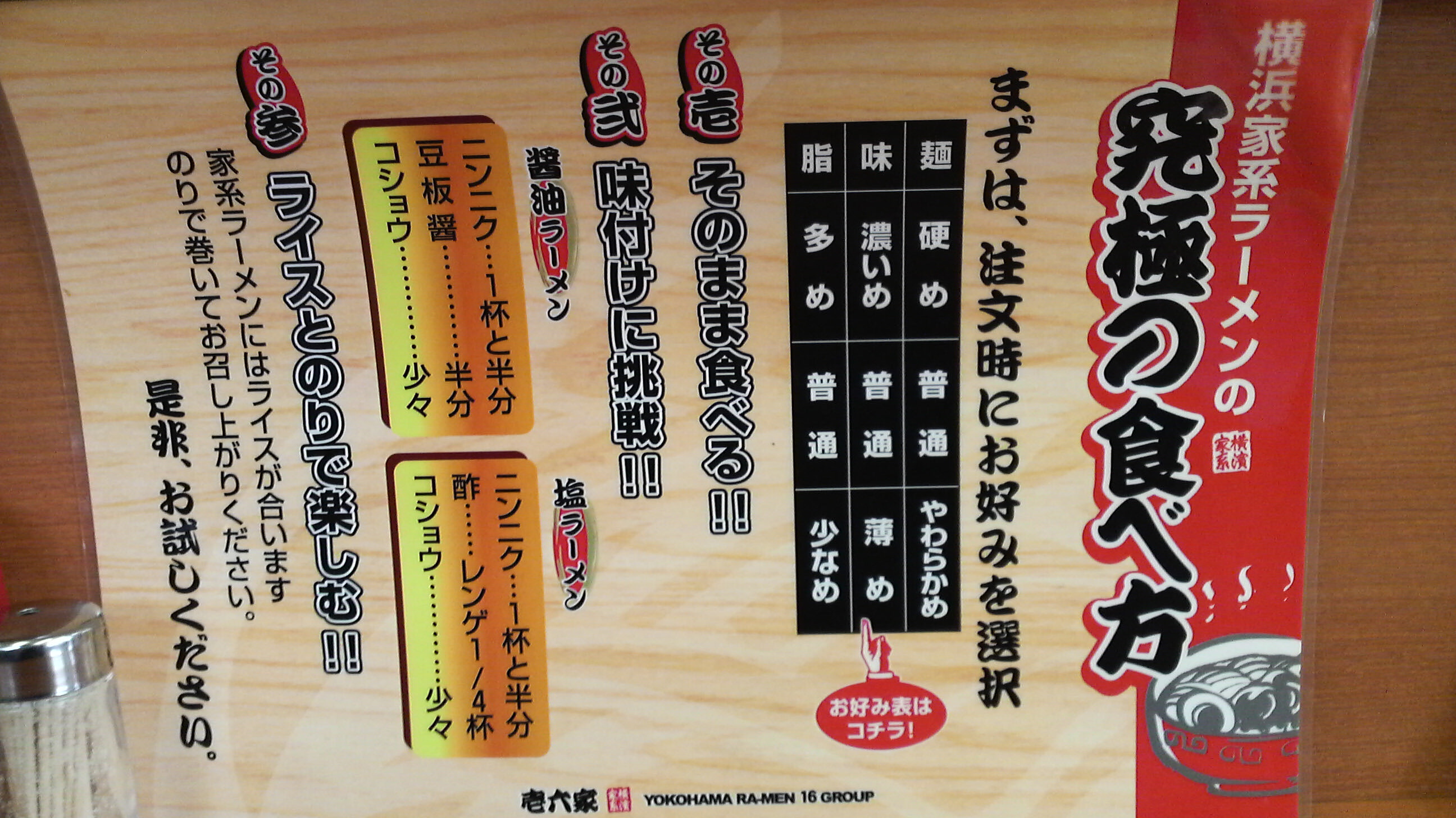 正油を基本に、塩、味噌と揃ってます。追加オーダー用のメニューです。