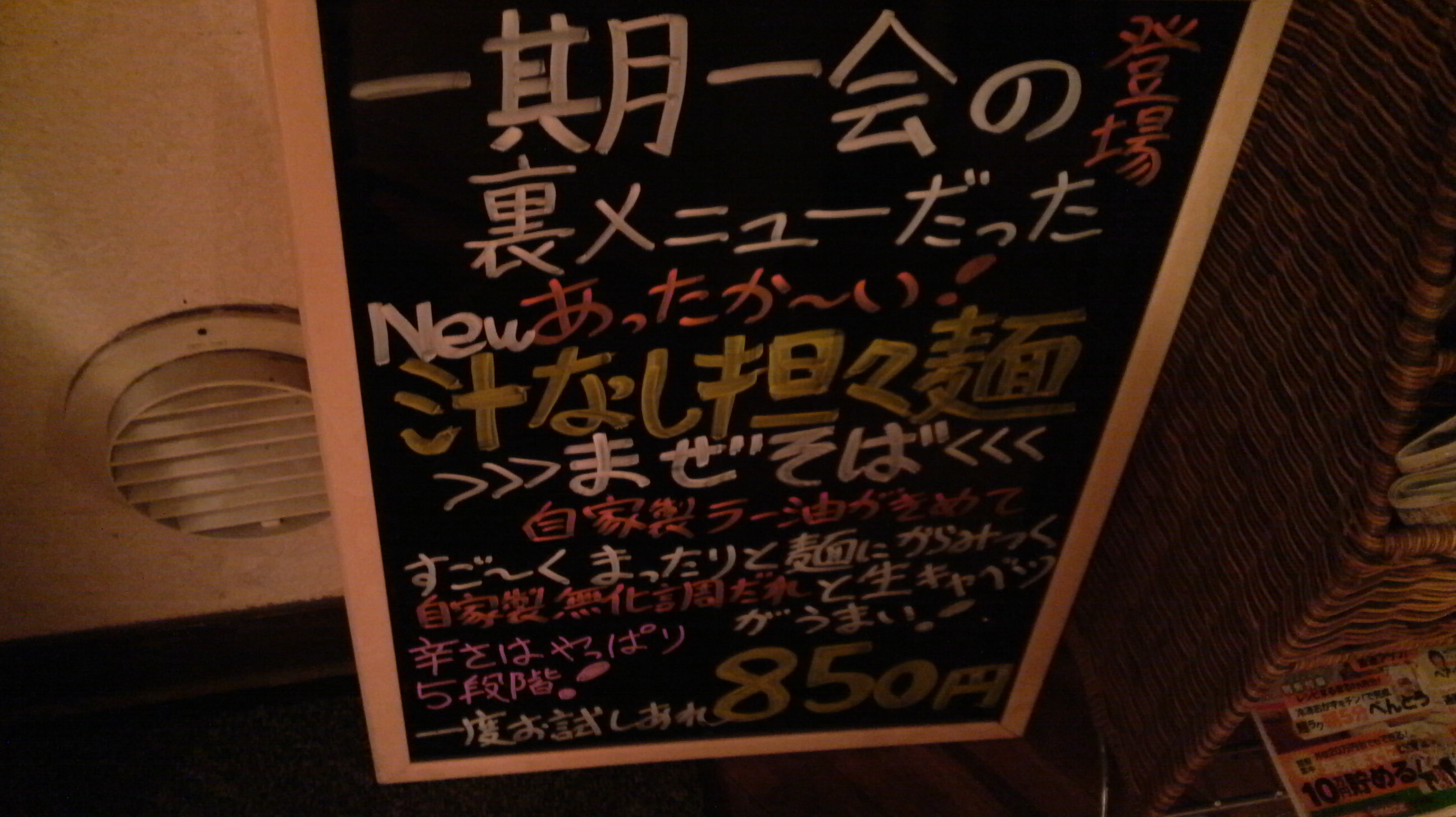 何を食おうか特に決めずに行ったんですが、店内すぐのところにメッセージボードが。おや、裏メニューなんてあったんだ。