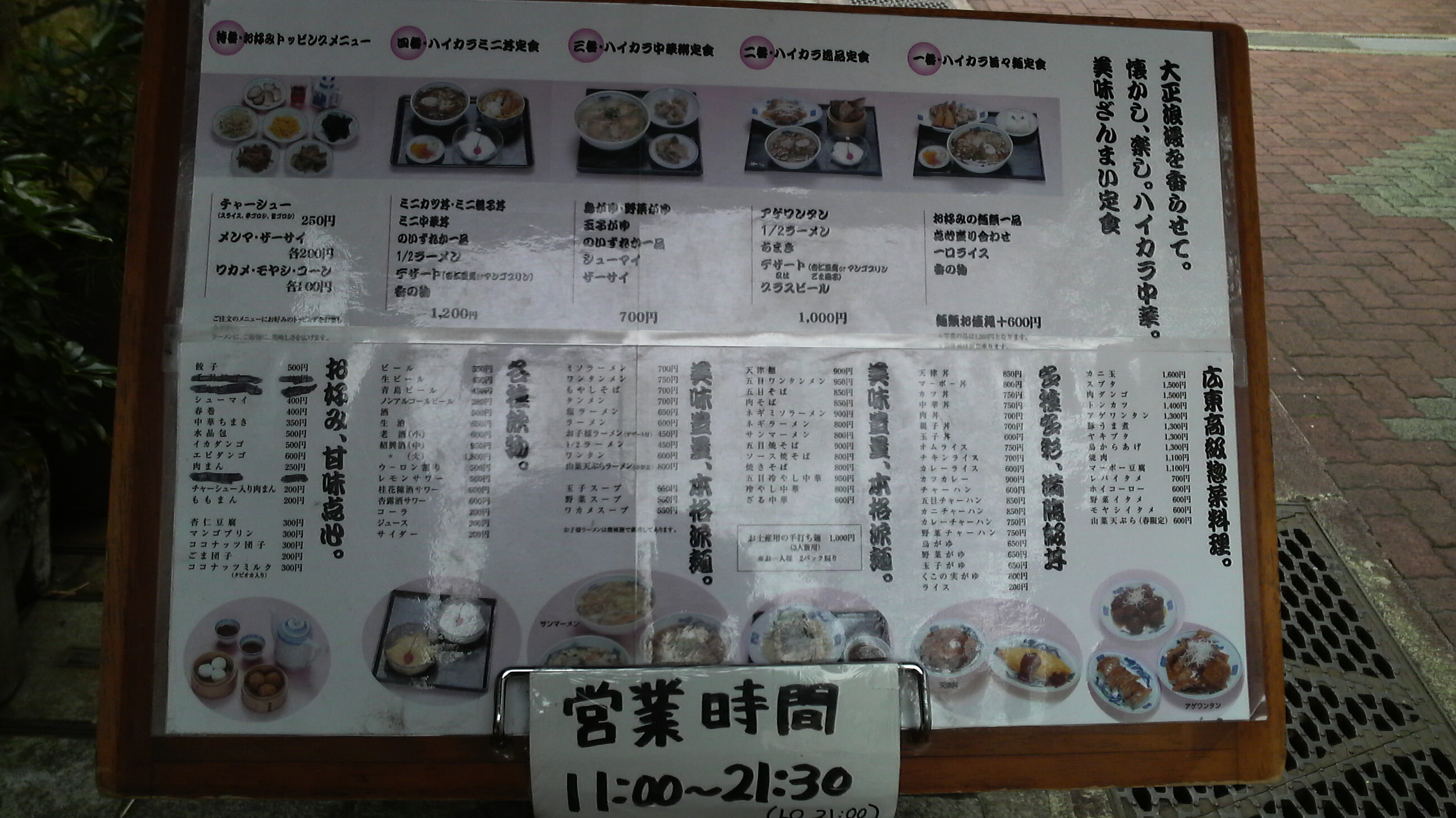 すんげえぶっとい竹でうす〜く麺を伸してました。初めて見たんだけど面白かったですよ。店頭にメニューが出てました。